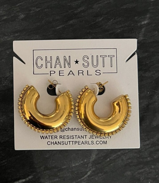 Chansutt Pearls - Rhinestone Hoops - GOLD