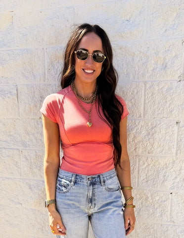 Free People - Pucker Up Seamless Tee - POPPY RED
