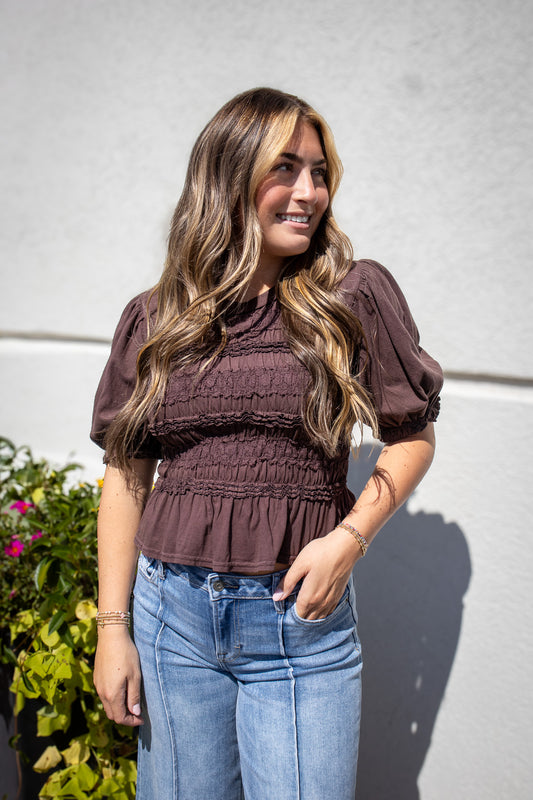 Gabriel Ruched Sides Long Sleeve Top- WHITE