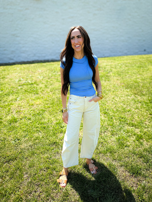 Hidden - Nori - Wide Leg Jean With Curved Seam - Light Wash