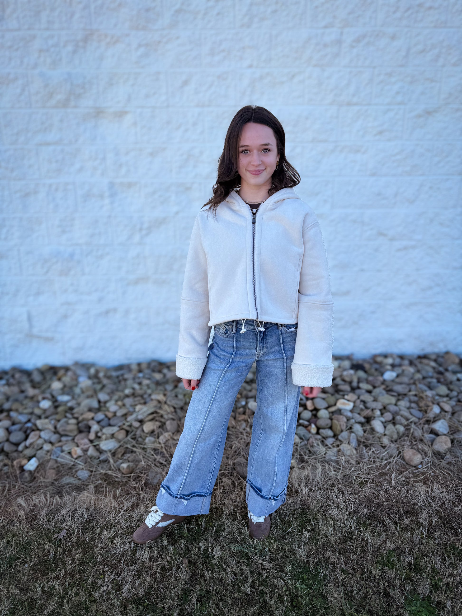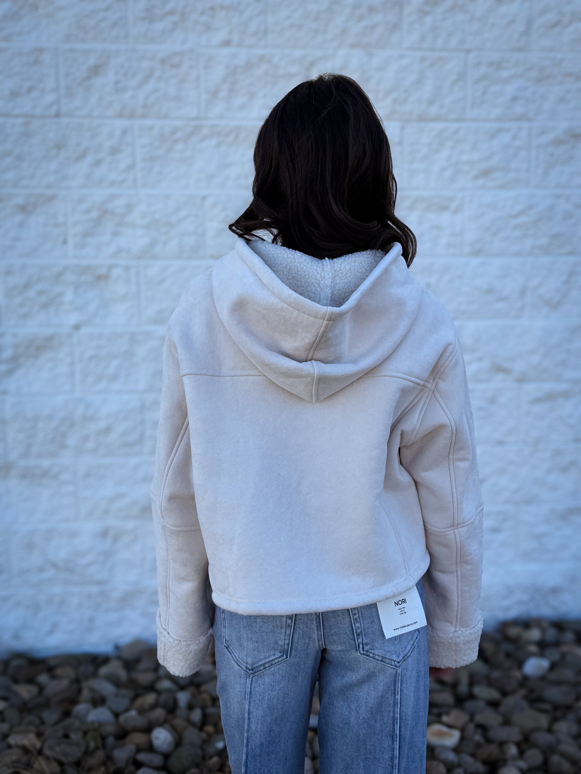 Luxurious alpaca sherpa meets refined suede in this hooded jacket, engineered for those who demand both warmth and sophistication. The plush sherpa lining delivers exceptional insulation without bulk, while premium suede creates a polished exterior that elevates any wardrobe. A front zipper ensures effortless layering and temperature control.