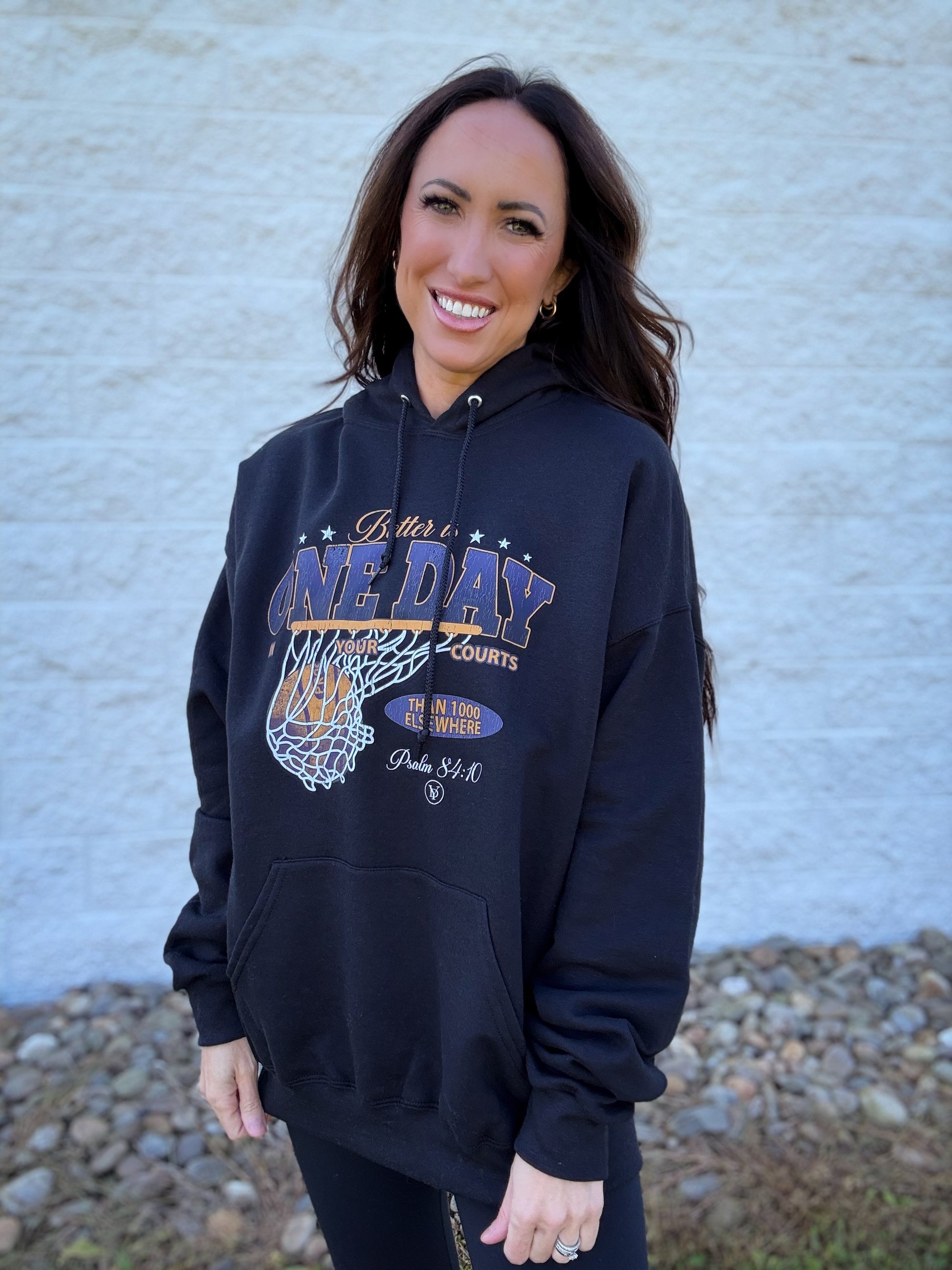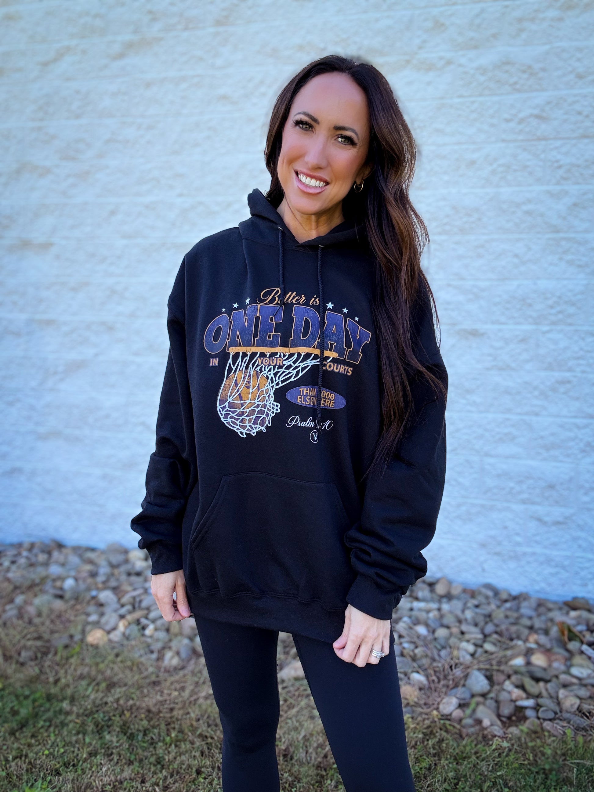 Stay comfortable and stylish with the Better is One Day Graphic Hoodie. Featuring a bold basketball graphic on a sleek black design, this hoodie delivers a strong statement both on and off the court. Crafted to fit true to size, it offers a perfect balance of warmth and ease, making it ideal for daily wear or layering during cooler days.