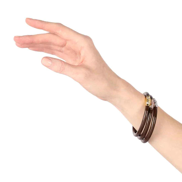 As Regina Brett says “When it comes to chocolate, resistance is futile.” And our Chocolate 3kingS AWB are precisely that…irresistible. Our classic three orbs are now imbued with the richness and velvety smoothness of chocolate, a shade that is a fashion diva’s favorite go-to for adding sophistication to any outfit and wristscape. Fabulous mixed with Gold AWB, Champagne AWB, and for an insanely beautiful tone on tone: Meteorite AWB.