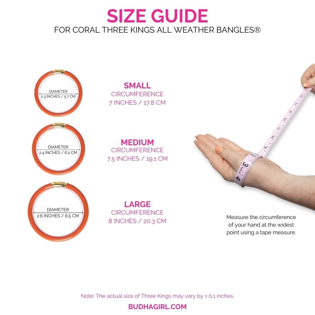 BuDhaGirl’s Three Kings All Weather Bangles® (AWB®) - Coral are beautiful orbs that hold all of our extraordinary qualities…they are weightless, soundless, waterproof, and TSA proof while being amazingly glamorous. Each set has our exclusive Lotus prayer bead in yellow gold, white gold, and rose gold…thus the name Three Kings, paying tribute to the three hues of gold.