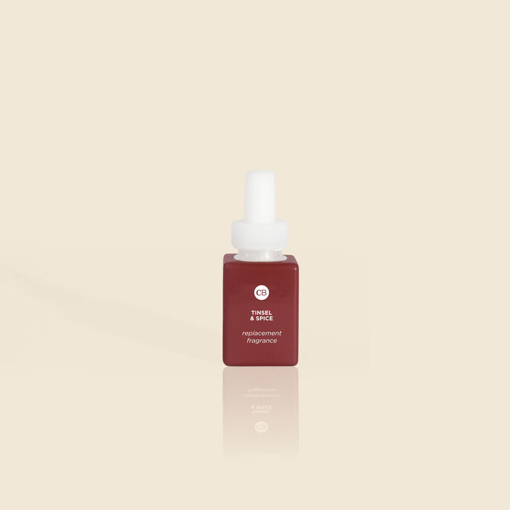 Meet our newest holiday staple, Tinsel & Spice! This spirited fragrance embodies all things holiday and is now available for use in your Pura device. With notes of cinnamon and clove, juniper berry, orange mandarin and forest woods you'll be diffusing this fragrance all season long!