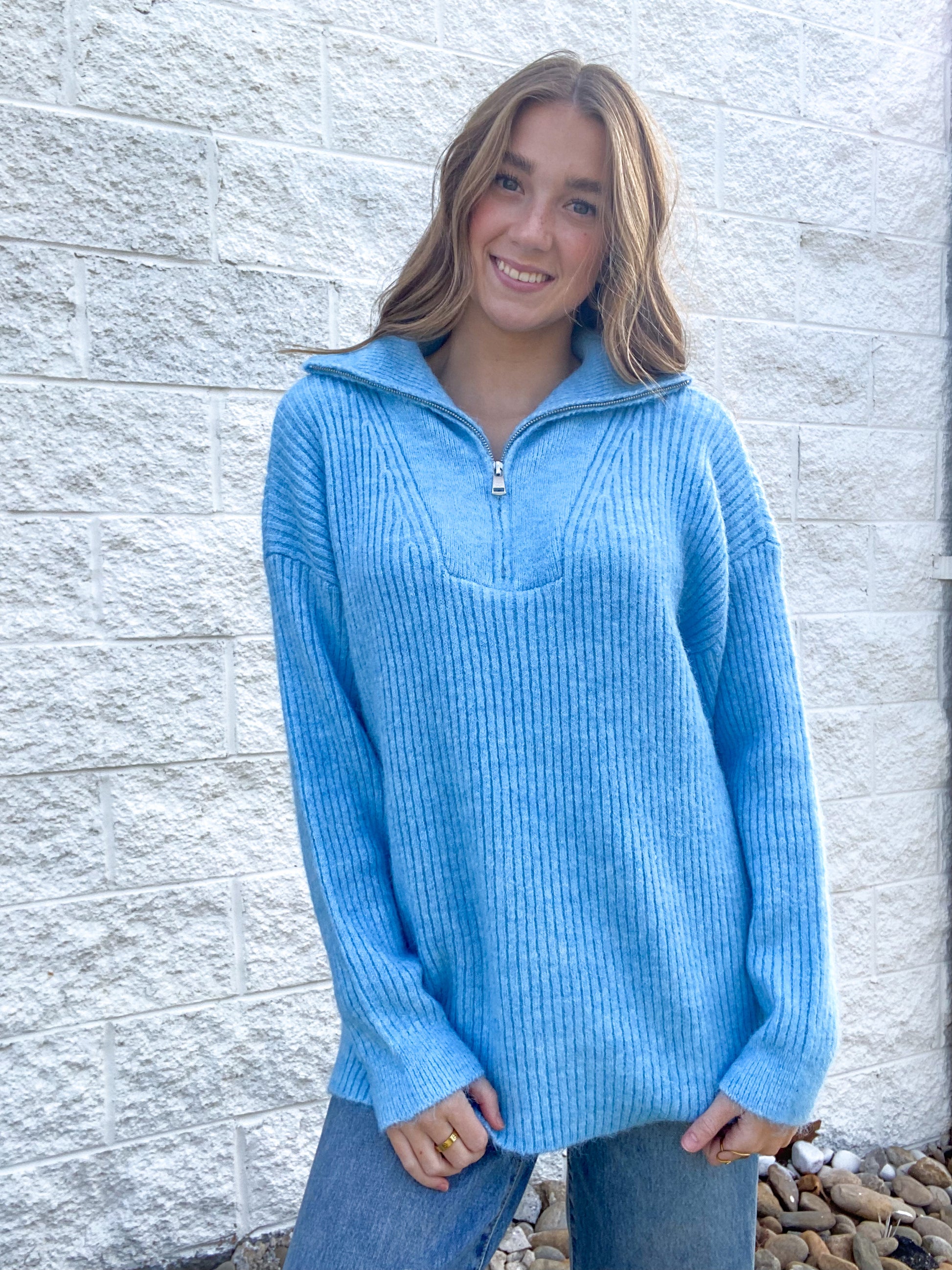 Cloud Nine Half Zip Sweater - BLUE