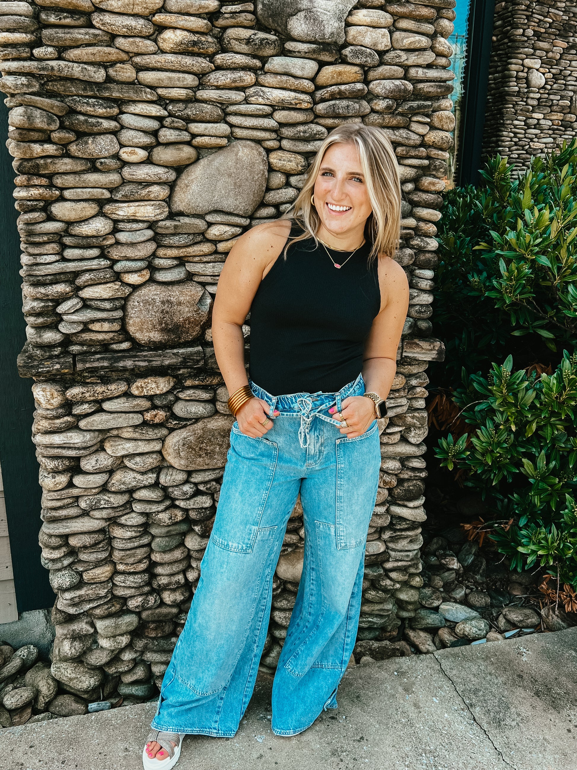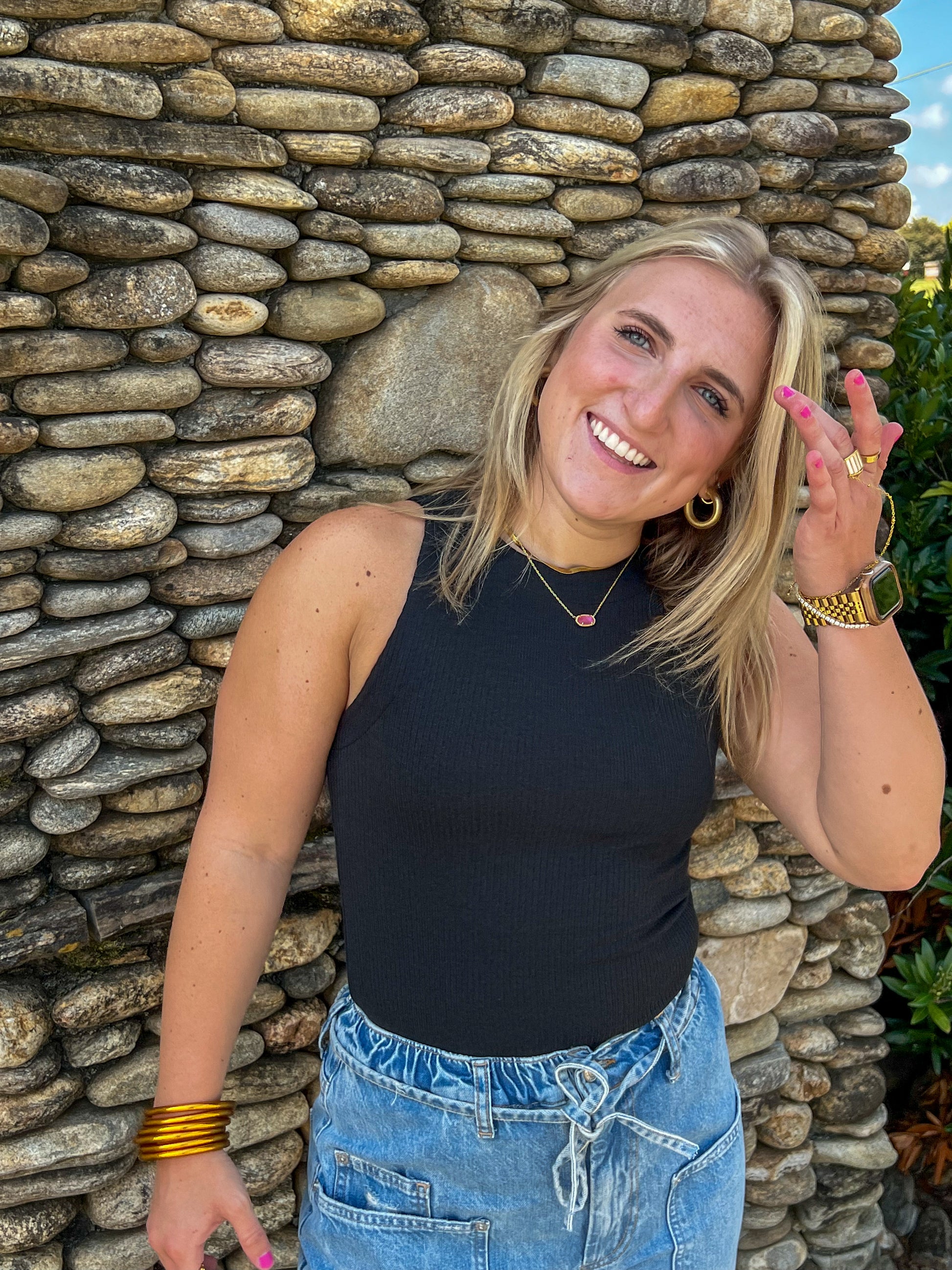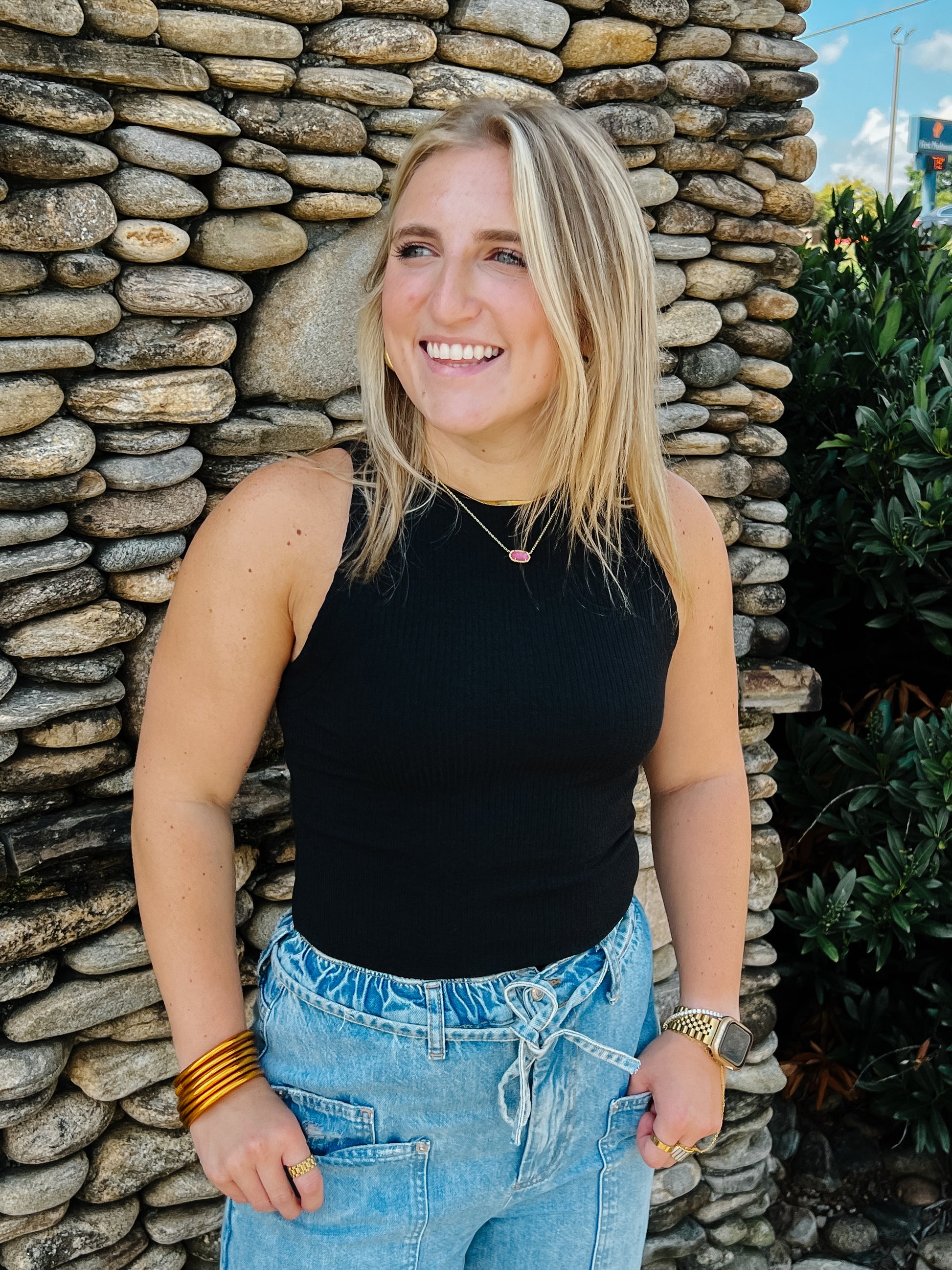Discover the perfect combination of fashion and comfort with our Coastal Beaches Ribbed Tank Top in BLACK. This tank top features a round high neck, giving you a sleek and sophisticated look. The ribbed texture adds a touch of style, while the fitted design ensures a flattering fit. Perfect for any beach day or casual outing, this tank top will become a staple in your wardrobe.