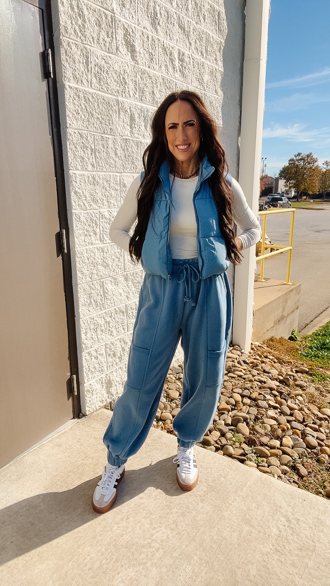 Stay warm and stylish with our Cropped Puffer Vest in Dusty Blue. Made from lightweight puffer fabric, it features a high neckline and sleeveless design for comfort. The stitched 3 design adds a touch of uniqueness, while the front slit pockets and zipper provide convenience. Complete the look with the monochromatic drawstrings at the waist.