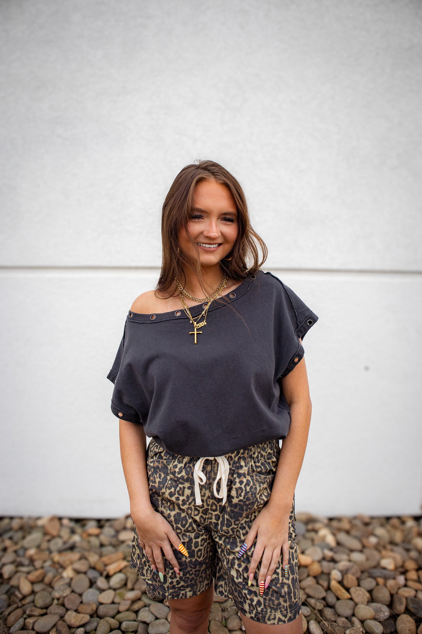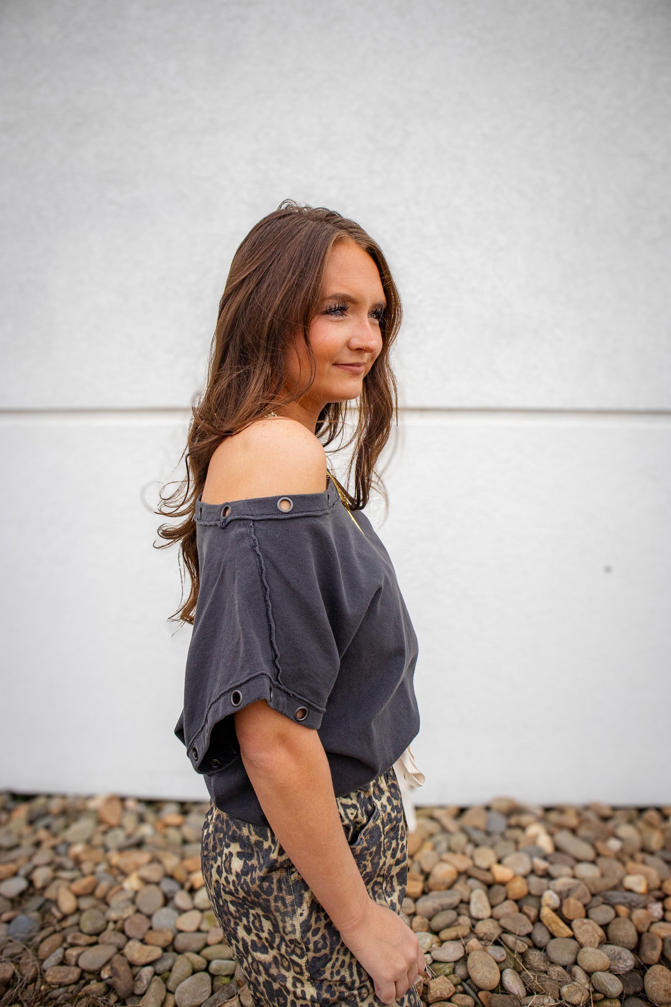 Grommet details give this off-the-shoulder tee from Free People the perfect touch of edge.