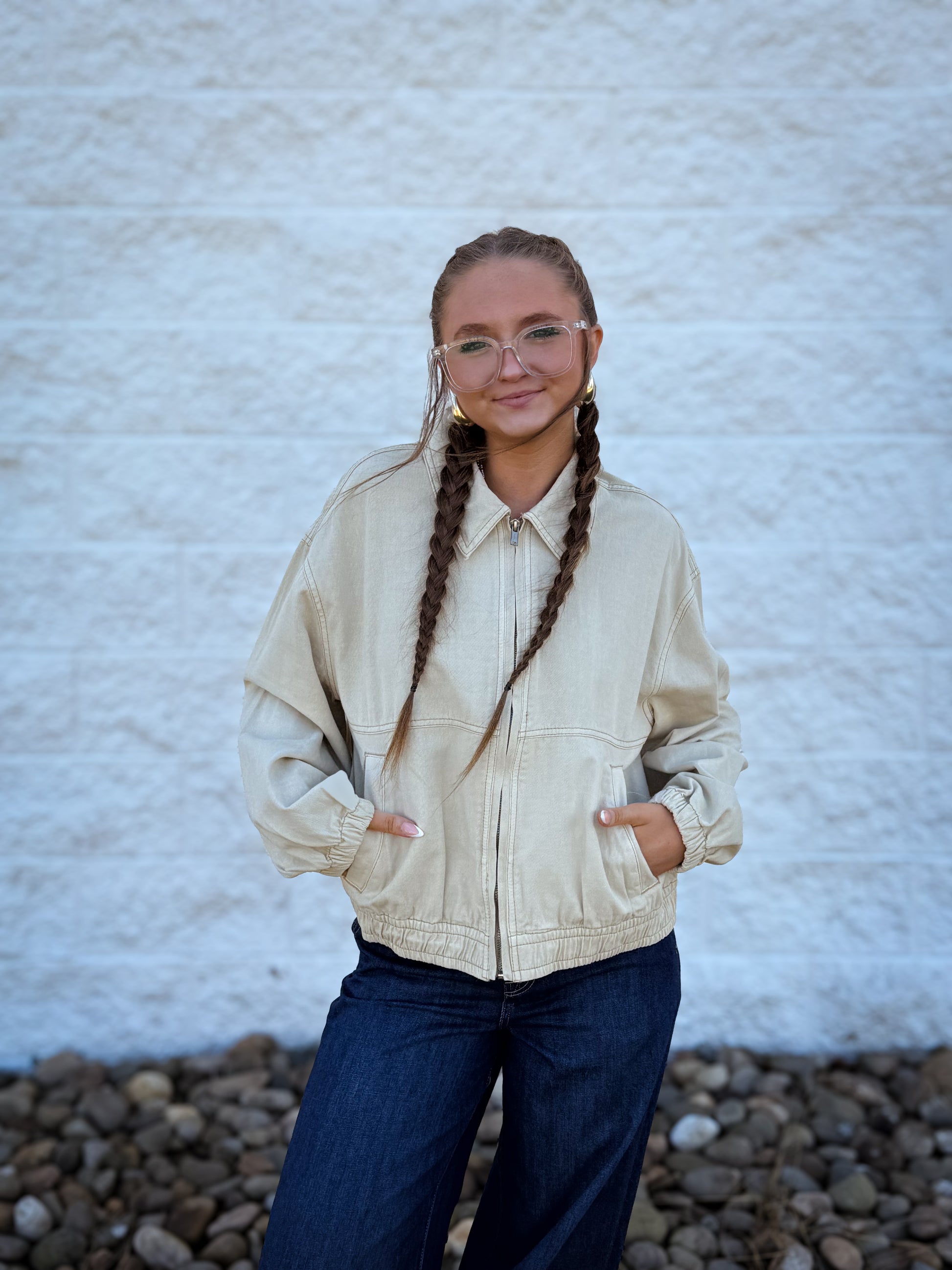 So essential for any-season layering, this cotton twill jacket from We The Free is featured in the perfect bomber-inspired style with a zip-front closure for an effortless addition to any outfit.