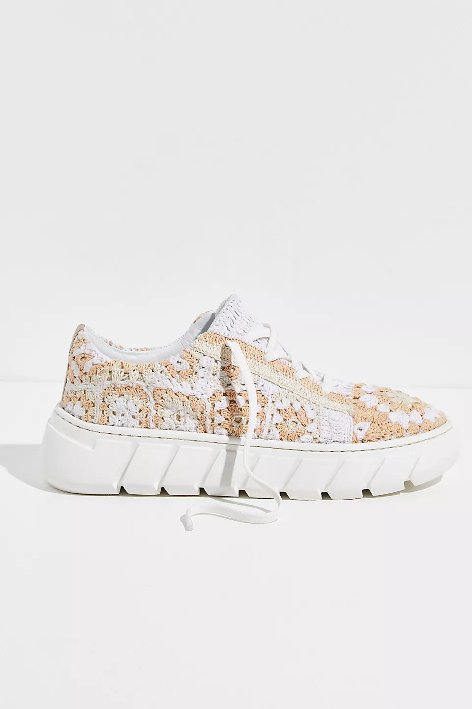 So bohemian-inspired and seriously unique, these effortlessly cool sneakers are featured in a lace-up style and low-top silhouette with a hand crocheted upper, woven floral details, and a chunky lug sole.