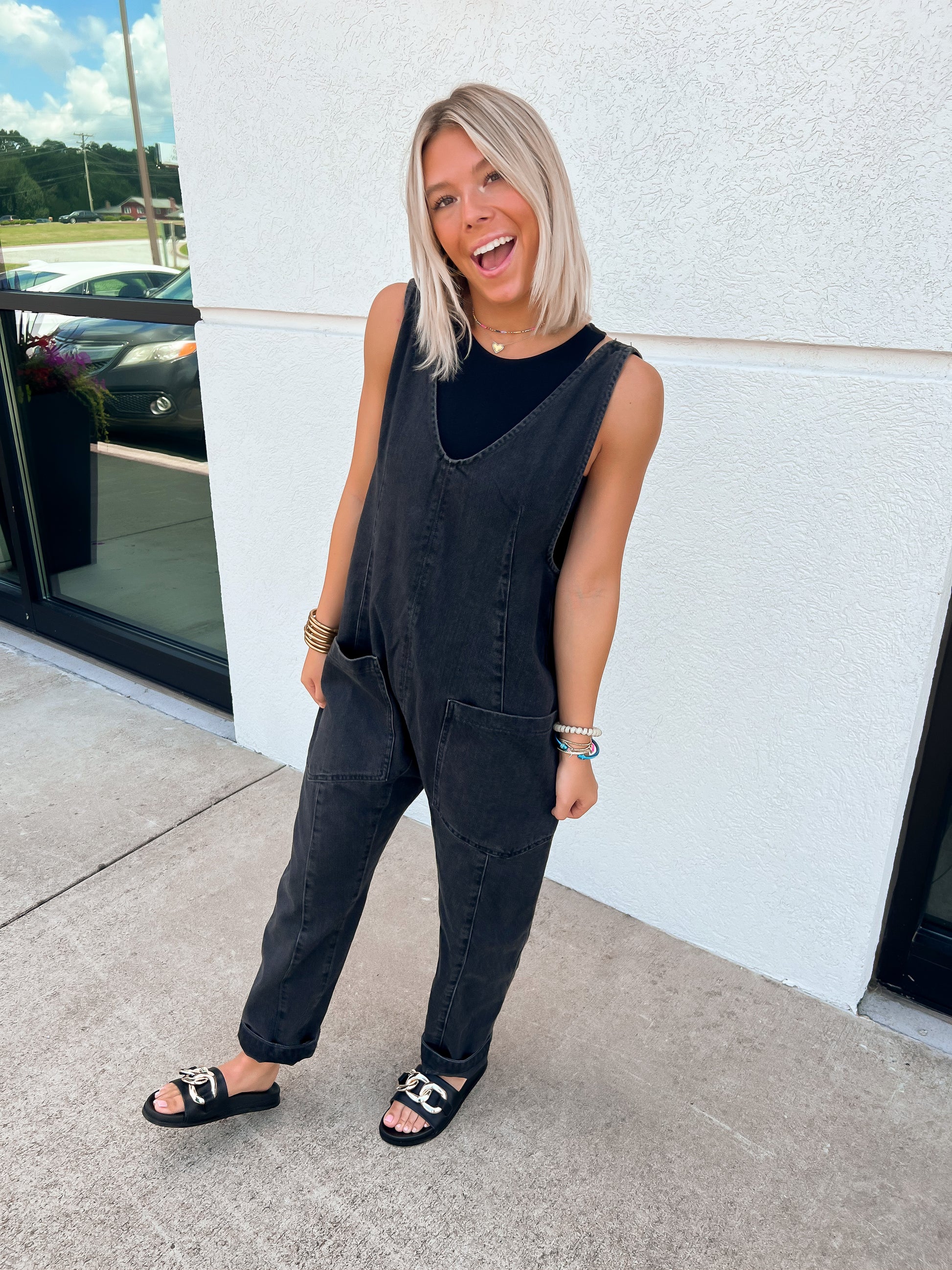 Free People - High Roller Jumpsuit - MINERAL BLACK