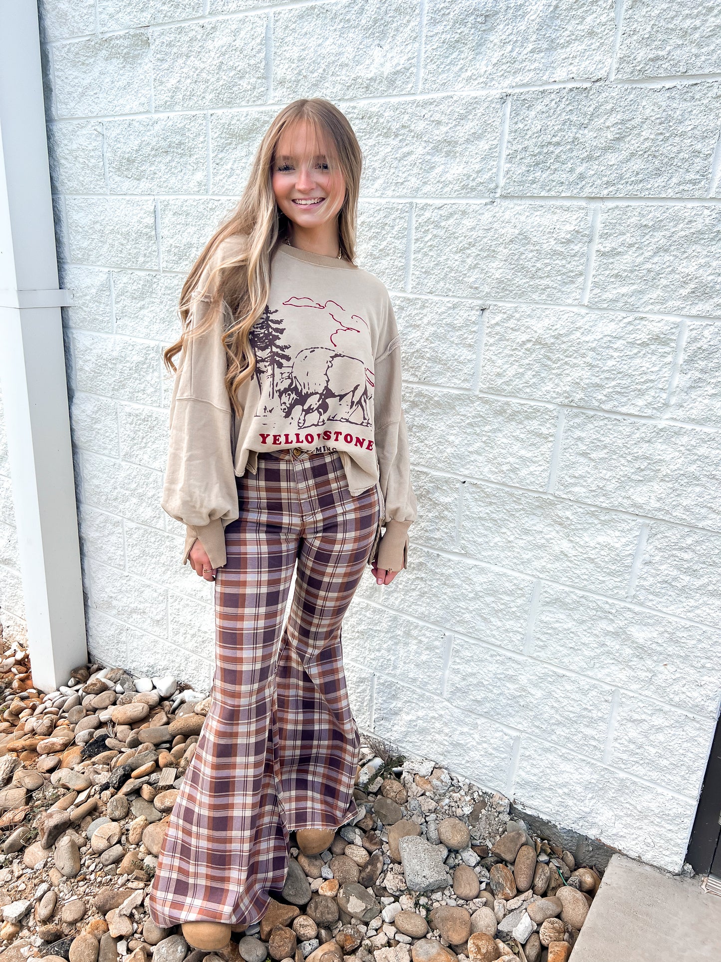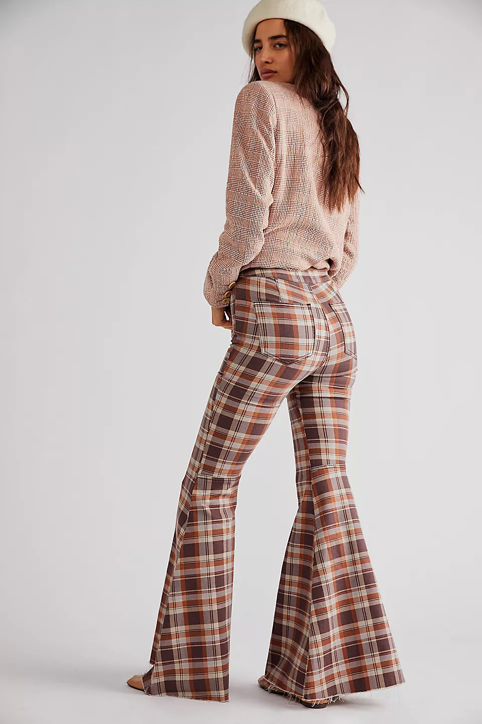 Free People- Just Float On Flares- Dark Chocolate Combo- PLAID