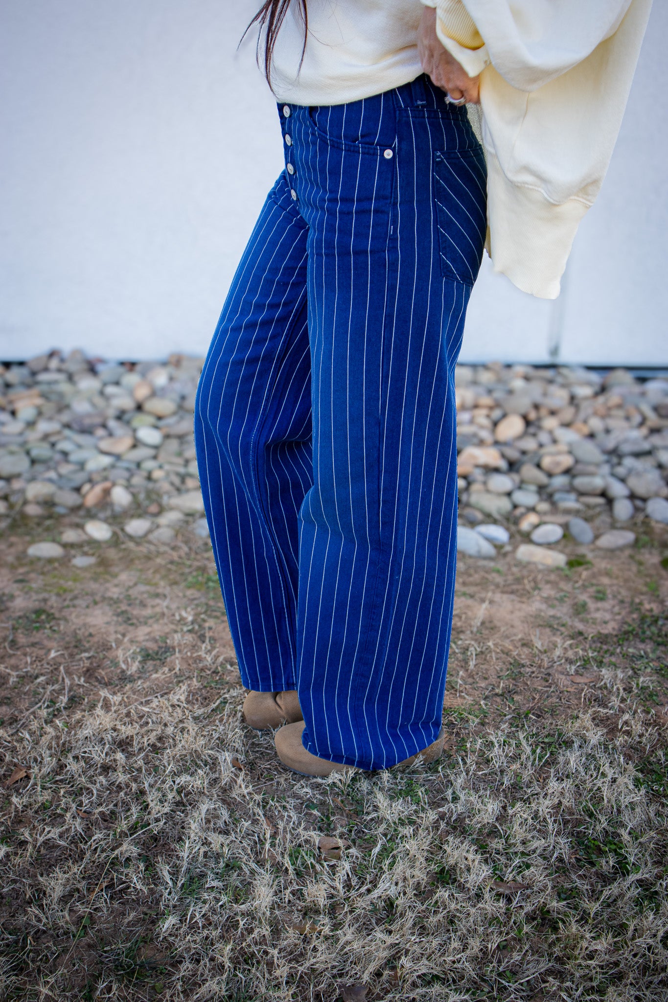 Free People - Nia Striped Boyfriend Jeans - INDIGO PINSTRIPE