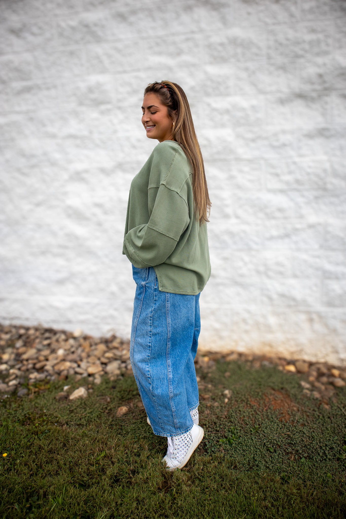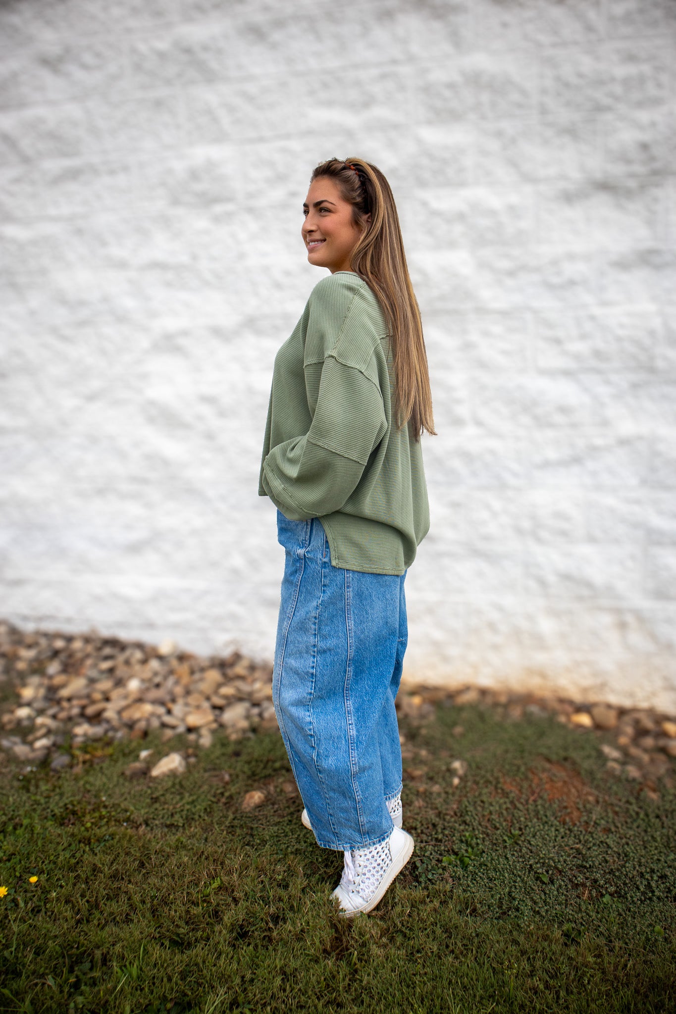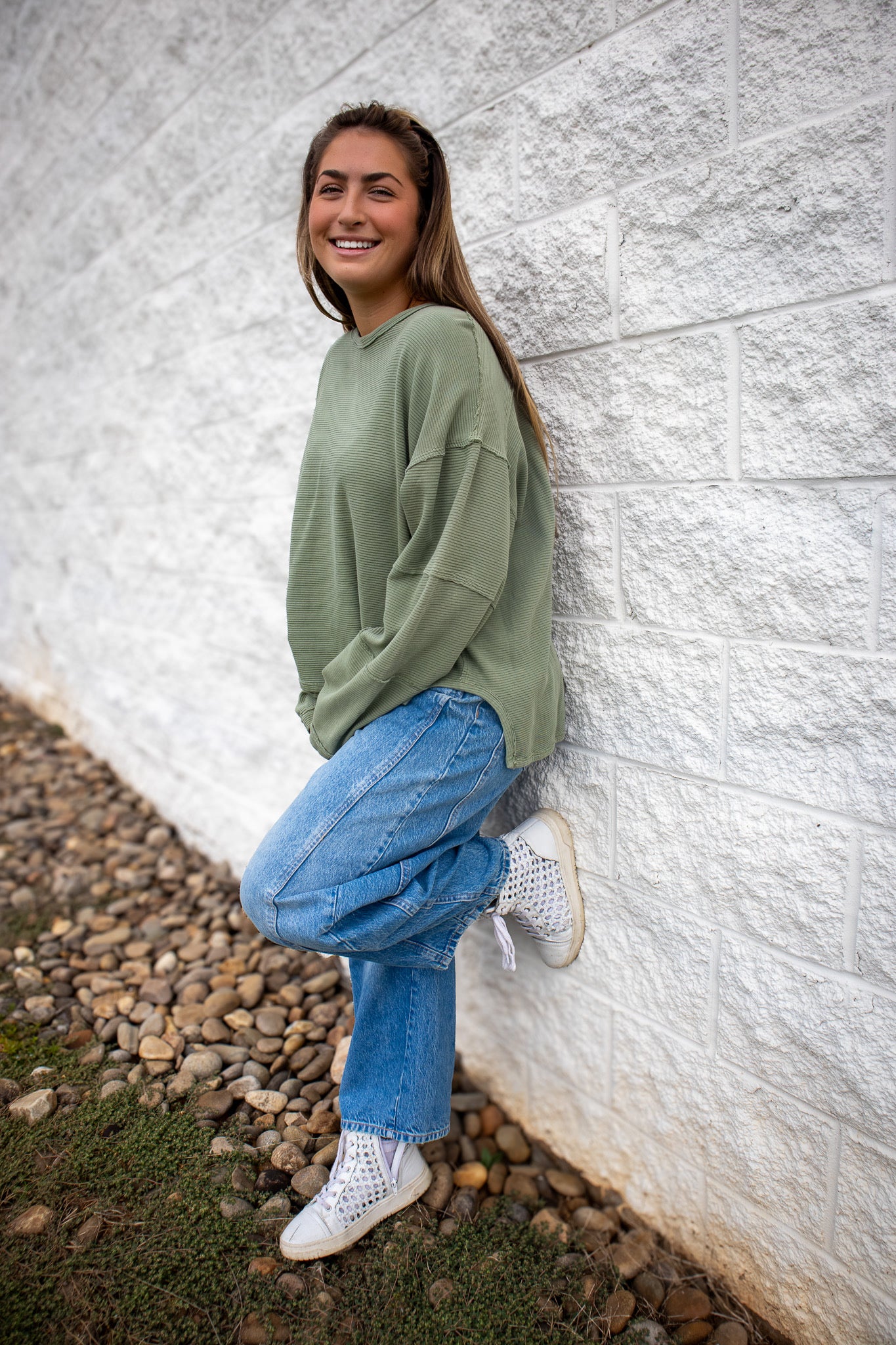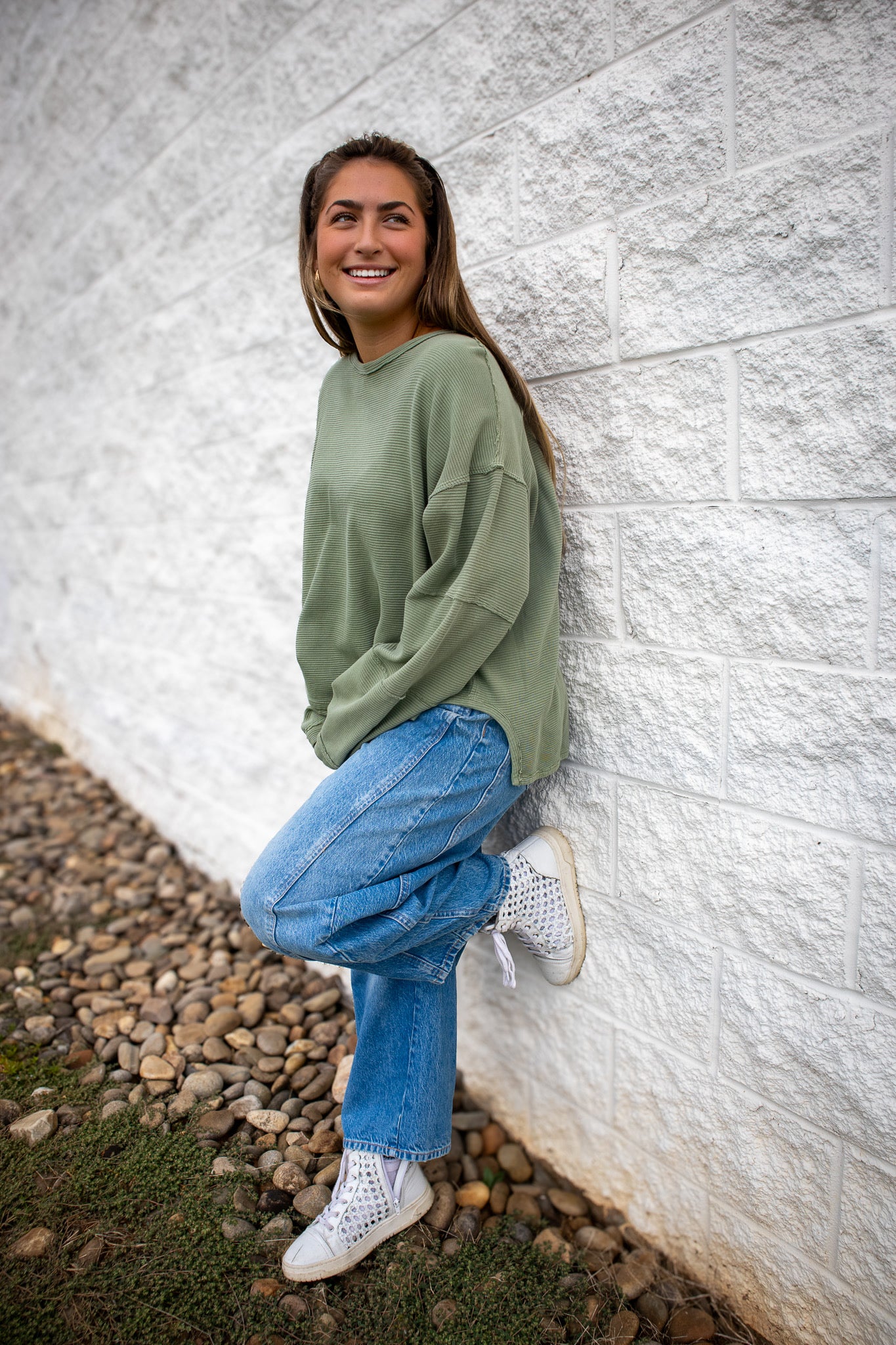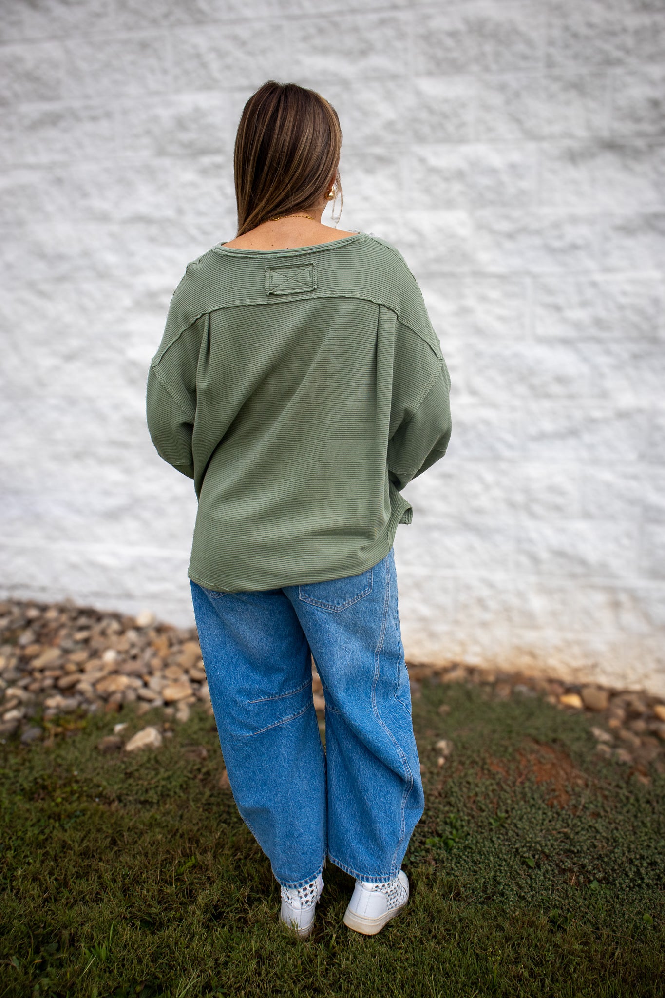 An elevated take on the classic tee, this long-sleeve from our We The Free collection features a ribbed fabrication and slouchy silhouette with defined seams and a scoop-neckline.