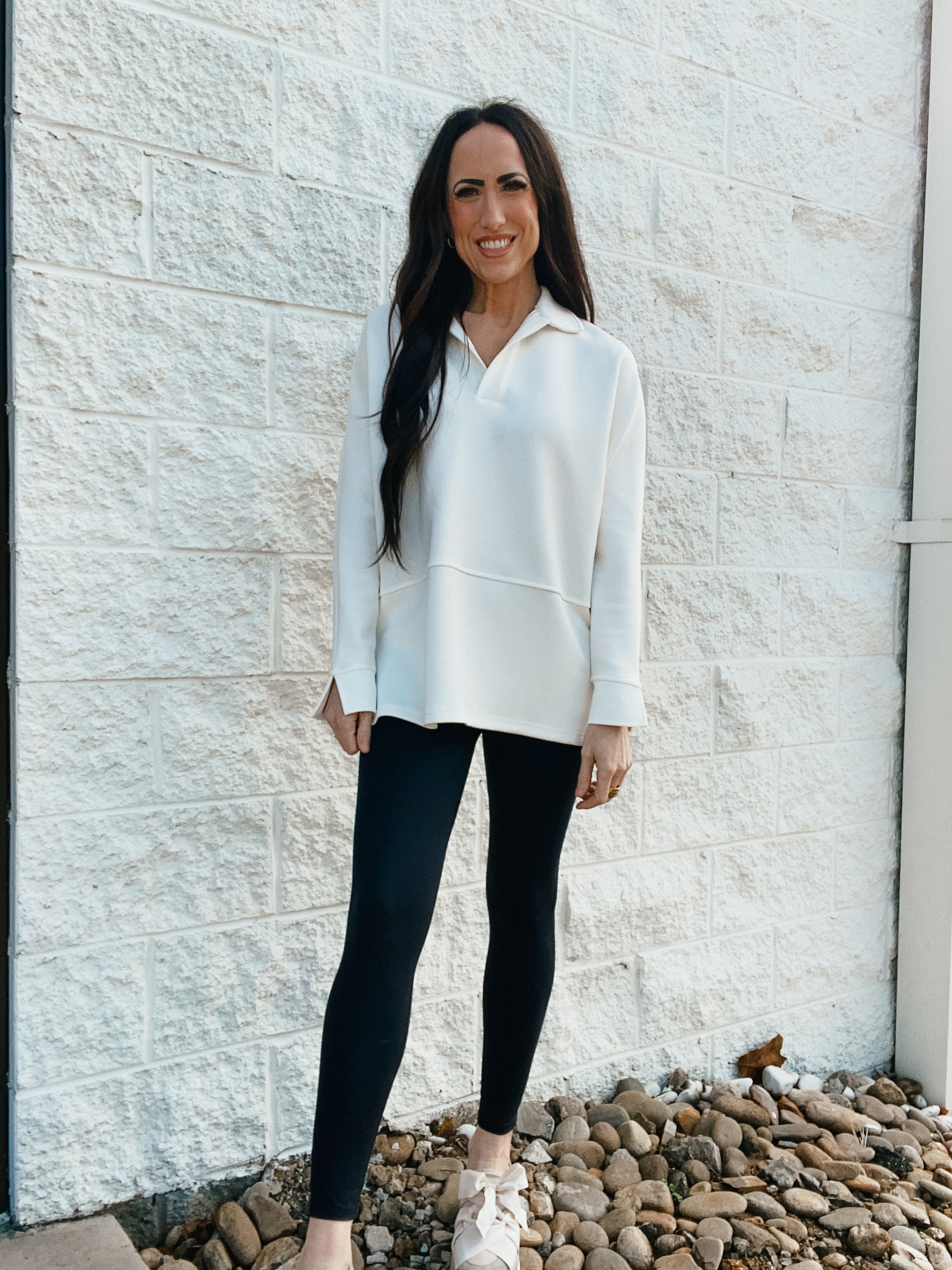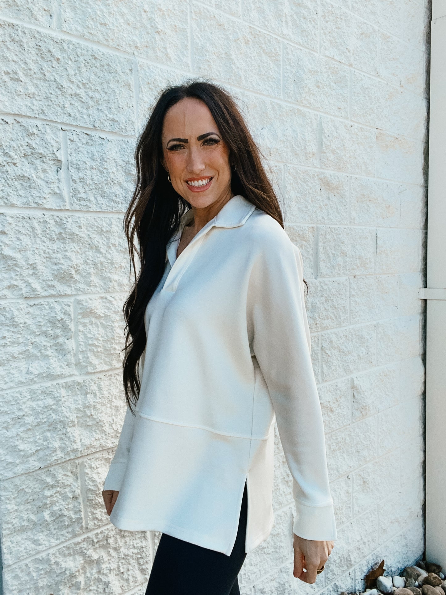 Introducing the P. Cill Collared Pullover, the perfect blend of comfort and style. Made with soft scuba modal fabrication and featuring a stylish collar, this pullover is a must-have for any wardrobe. Upgrade your casual look and stay cozy all day long.