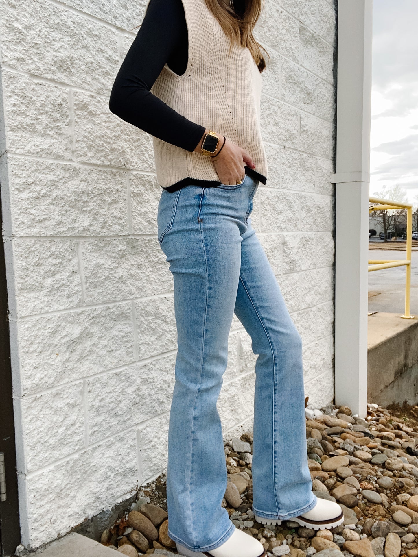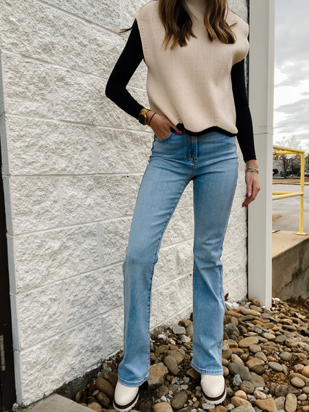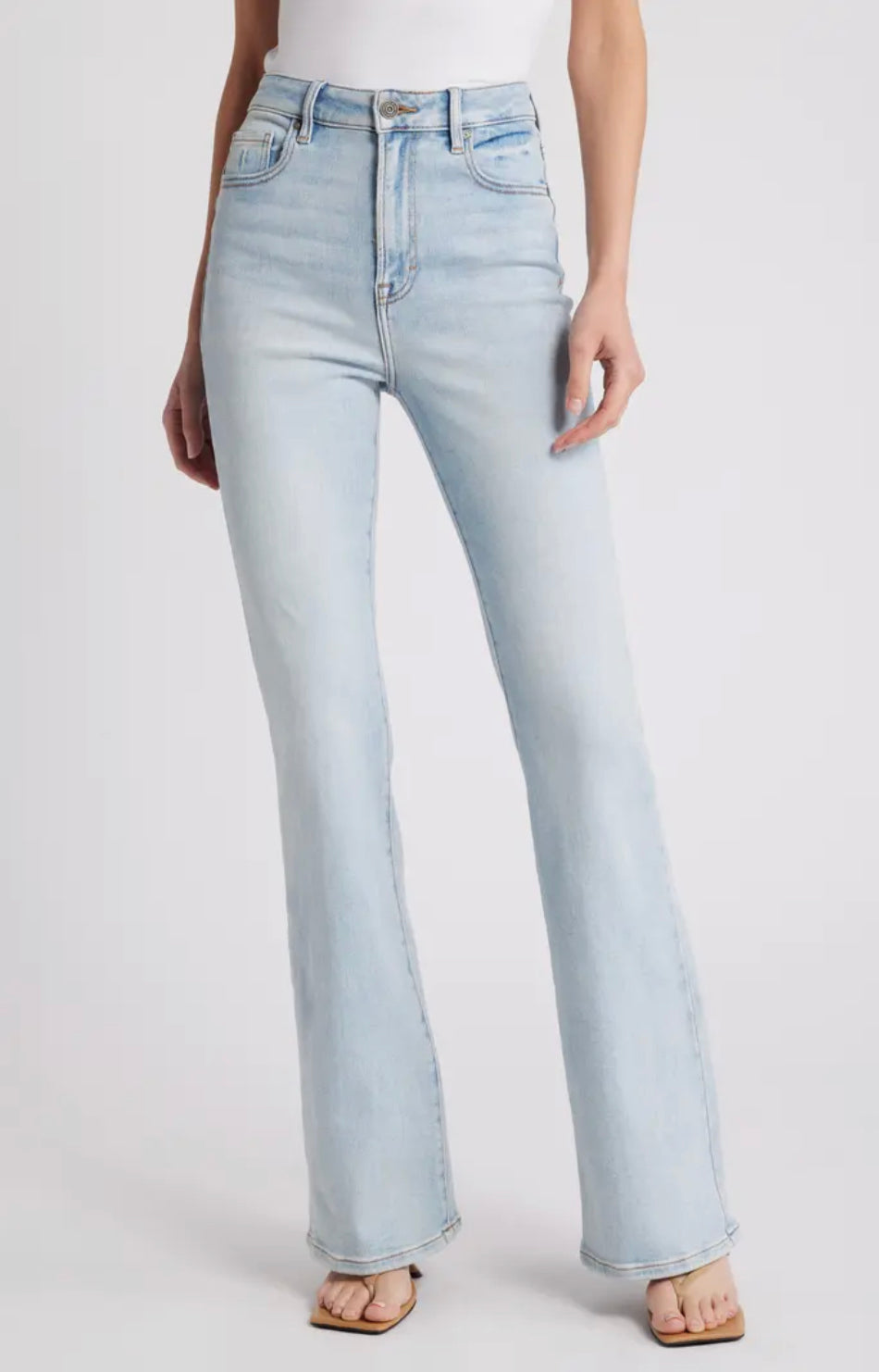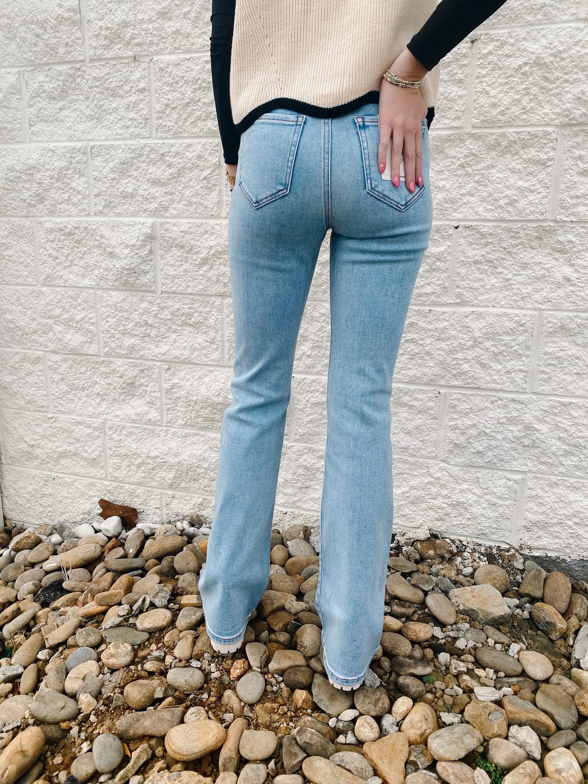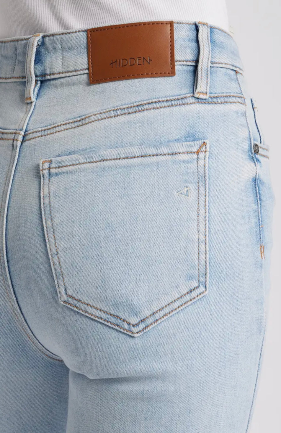 Hidden - Happi 34" Inseam High Rise Flare Jean - Light Wash