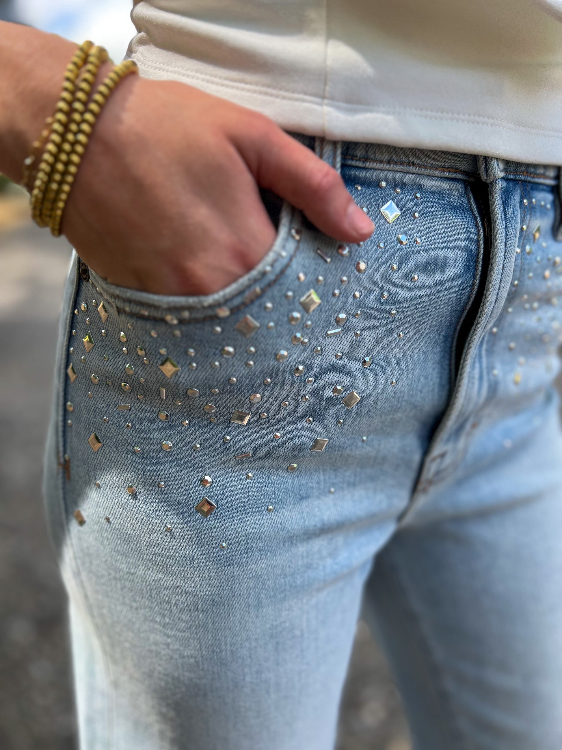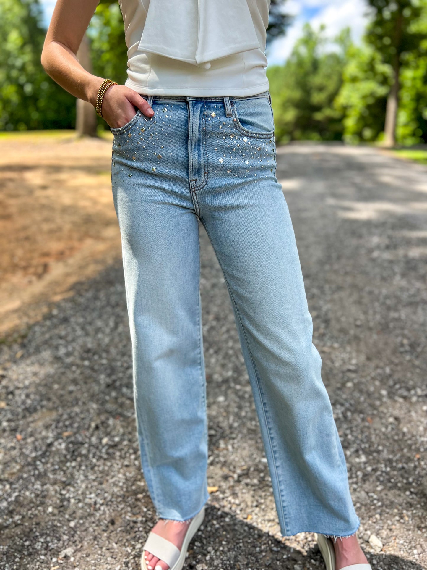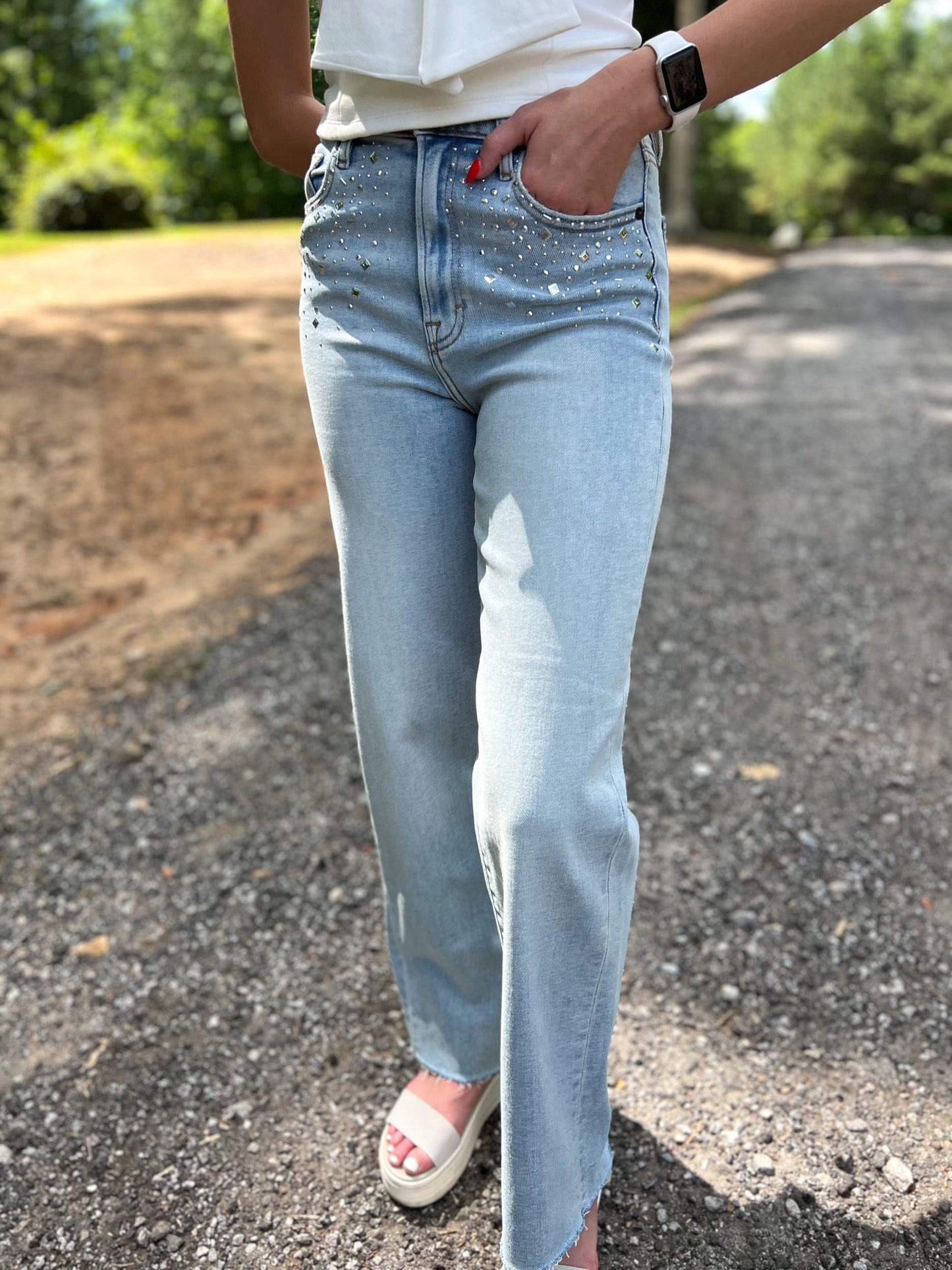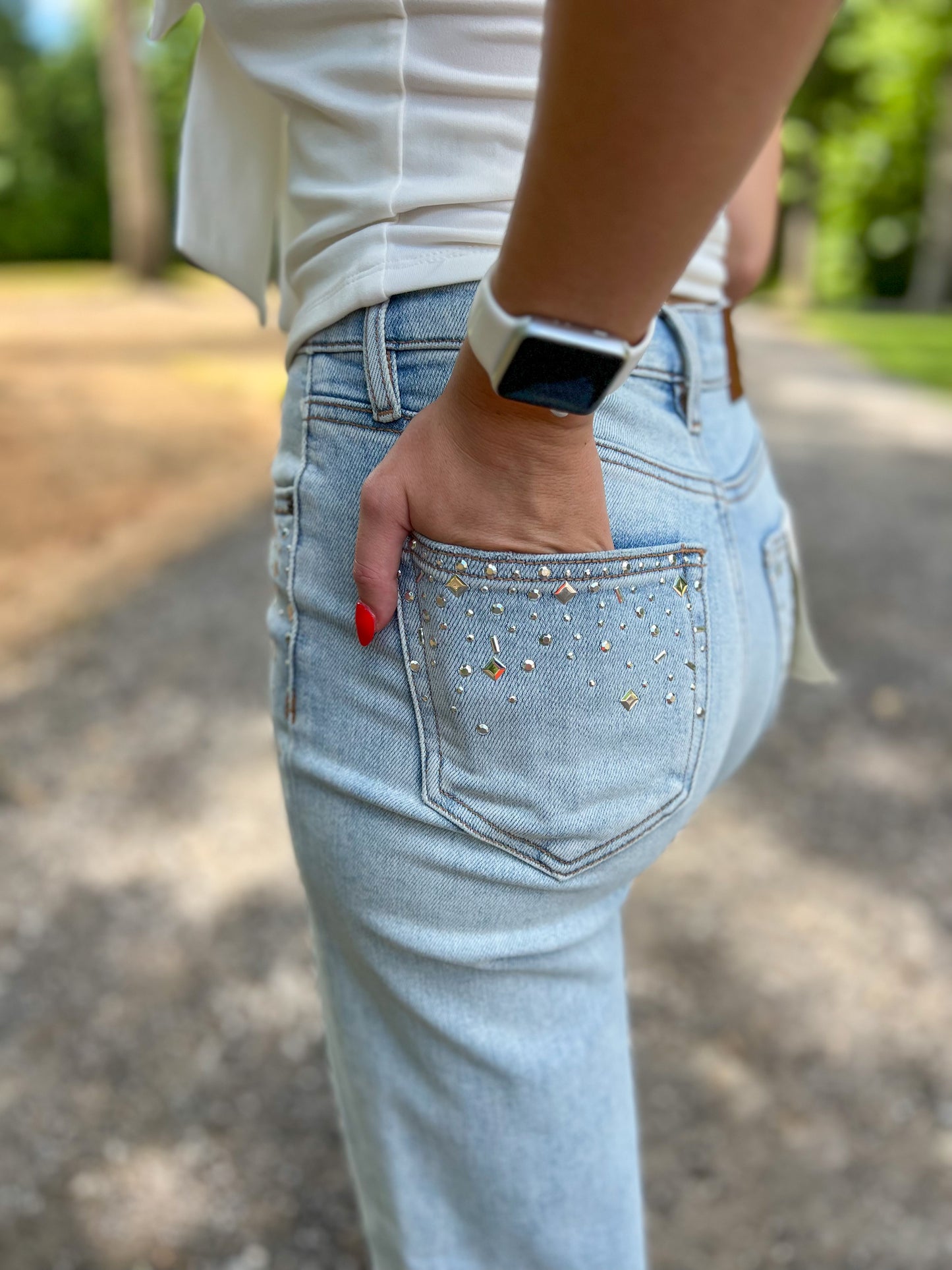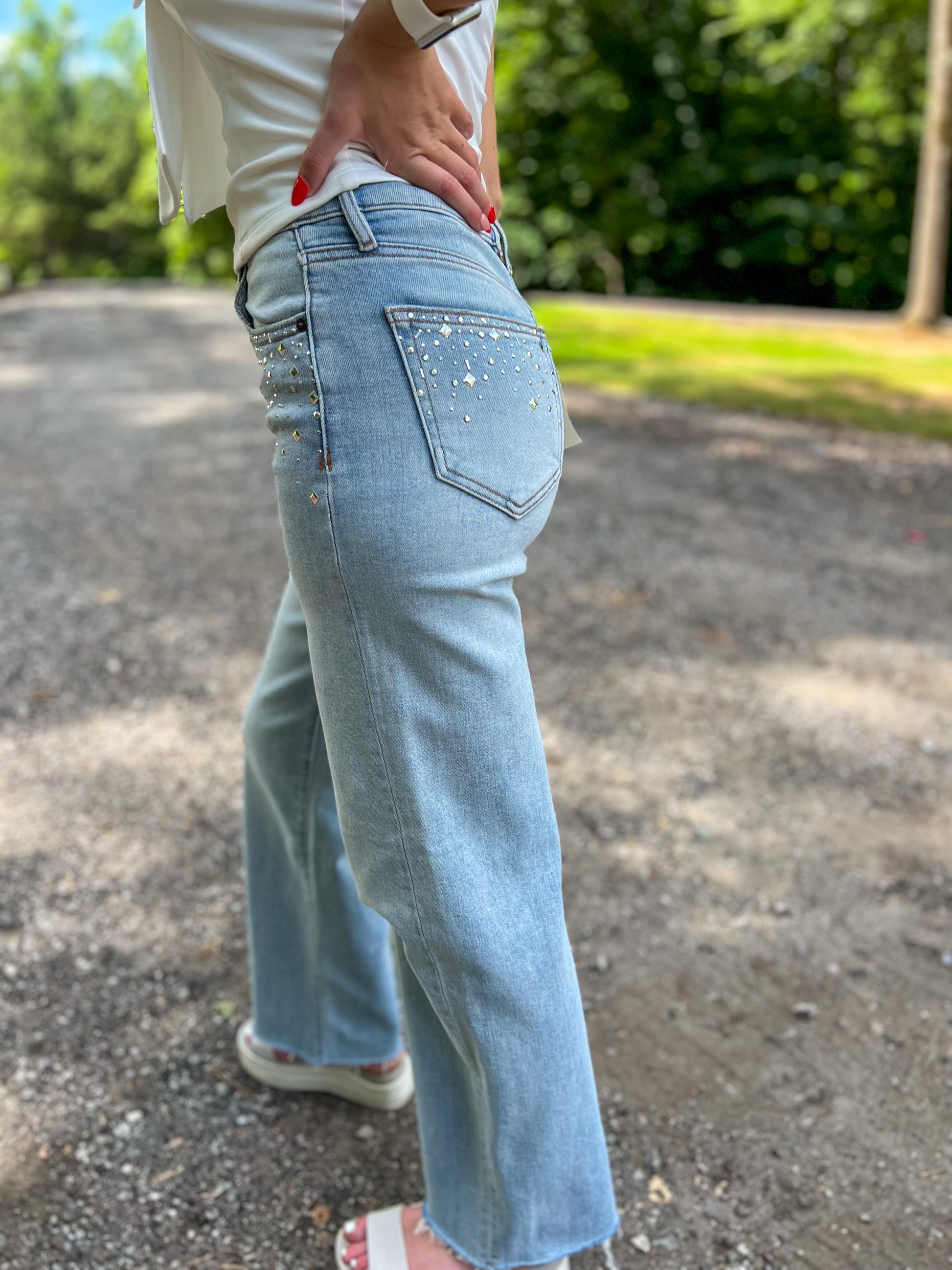 Hidden - Logan Light Wash Studded Hotfix Dad Jean