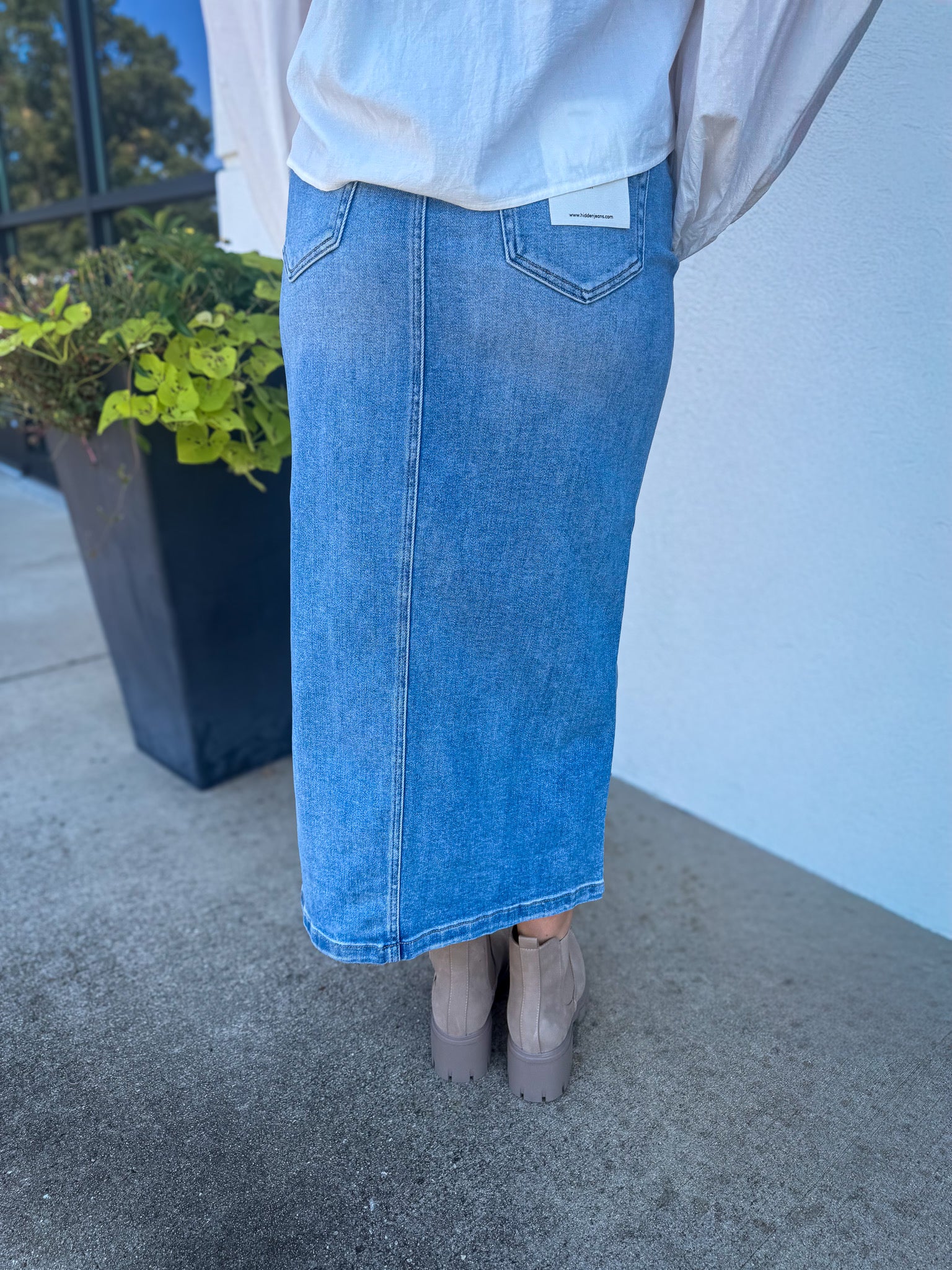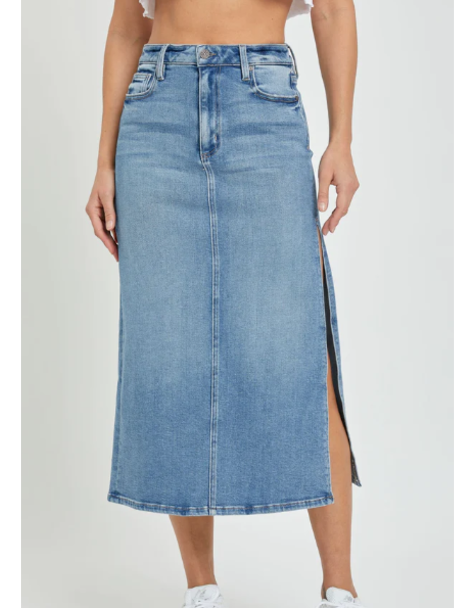 HIdden - Peyton Midi Skirt with Side Slit - Medium Wash
