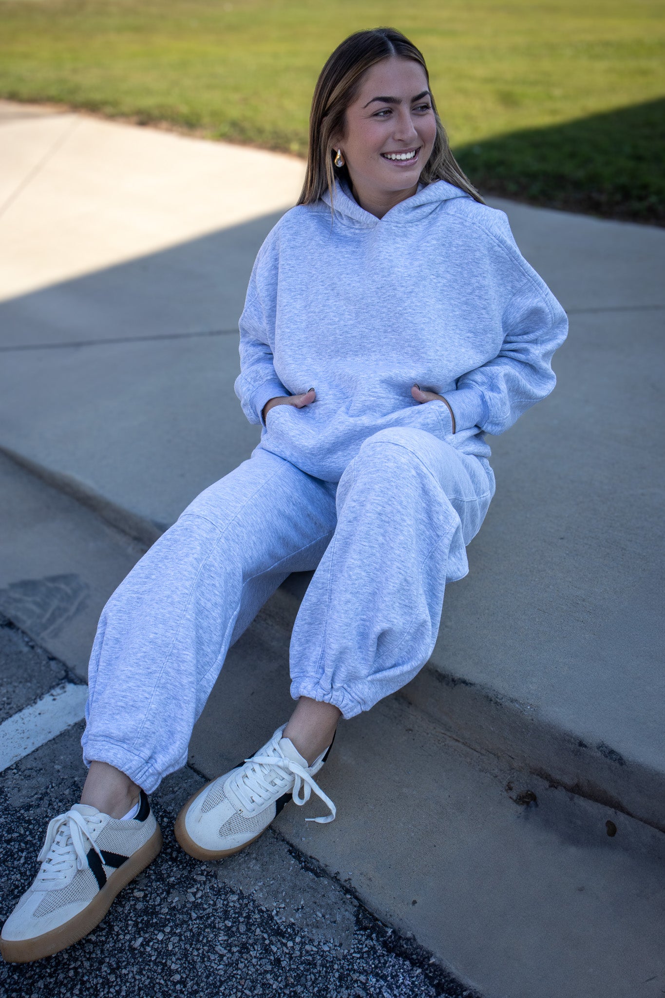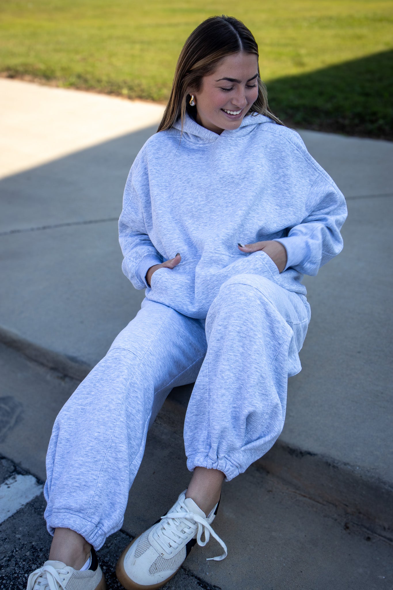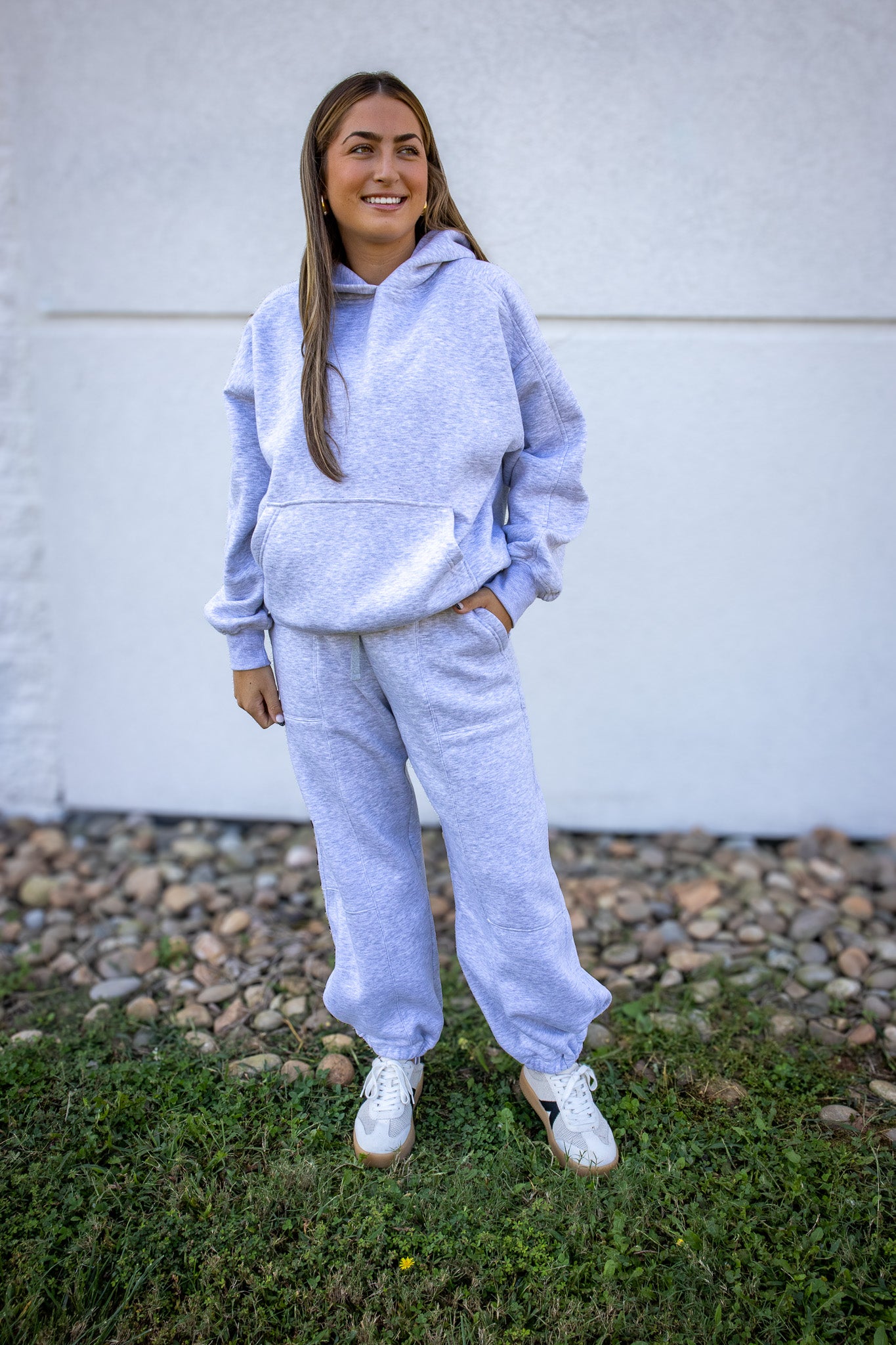 Experience ultimate comfort with the It Girl Oversized Fleece Hoodie in heather grey. Designed for a relaxed, oversized fit, it features soft fleece lining to keep you warm and cozy. The hoodie includes an elastic cuff and bottom for a snug feel without restricting movement. Stay hands-free and stylish with the spacious kangaroo pocket. Perfect for lounging or casual outings, this hoodie blends effortless style with practical comfort.