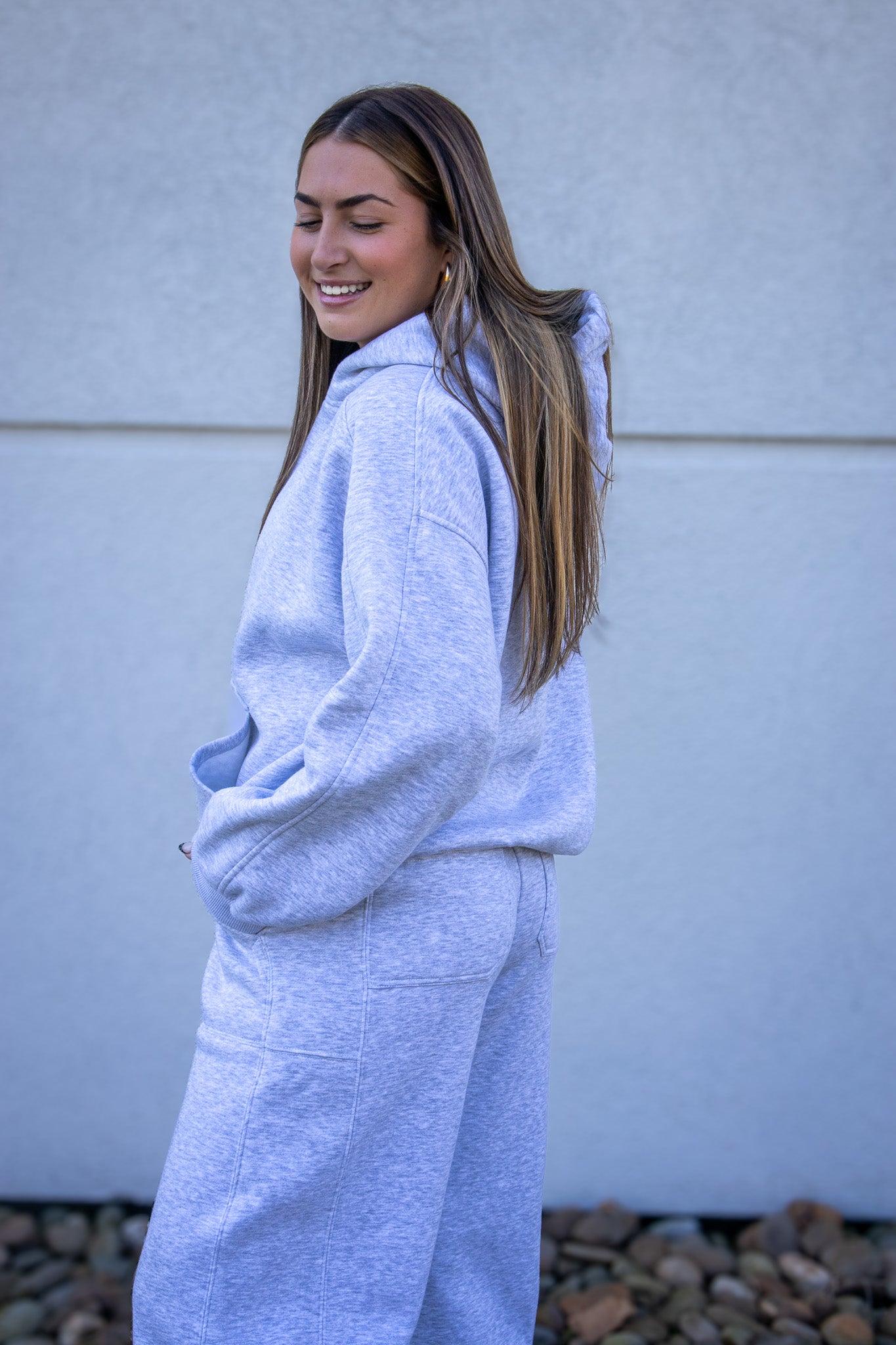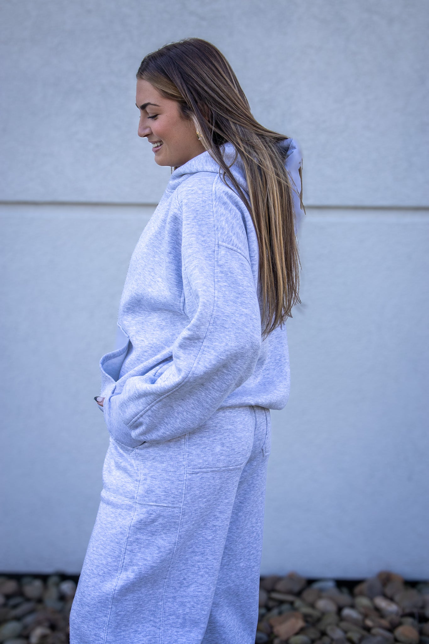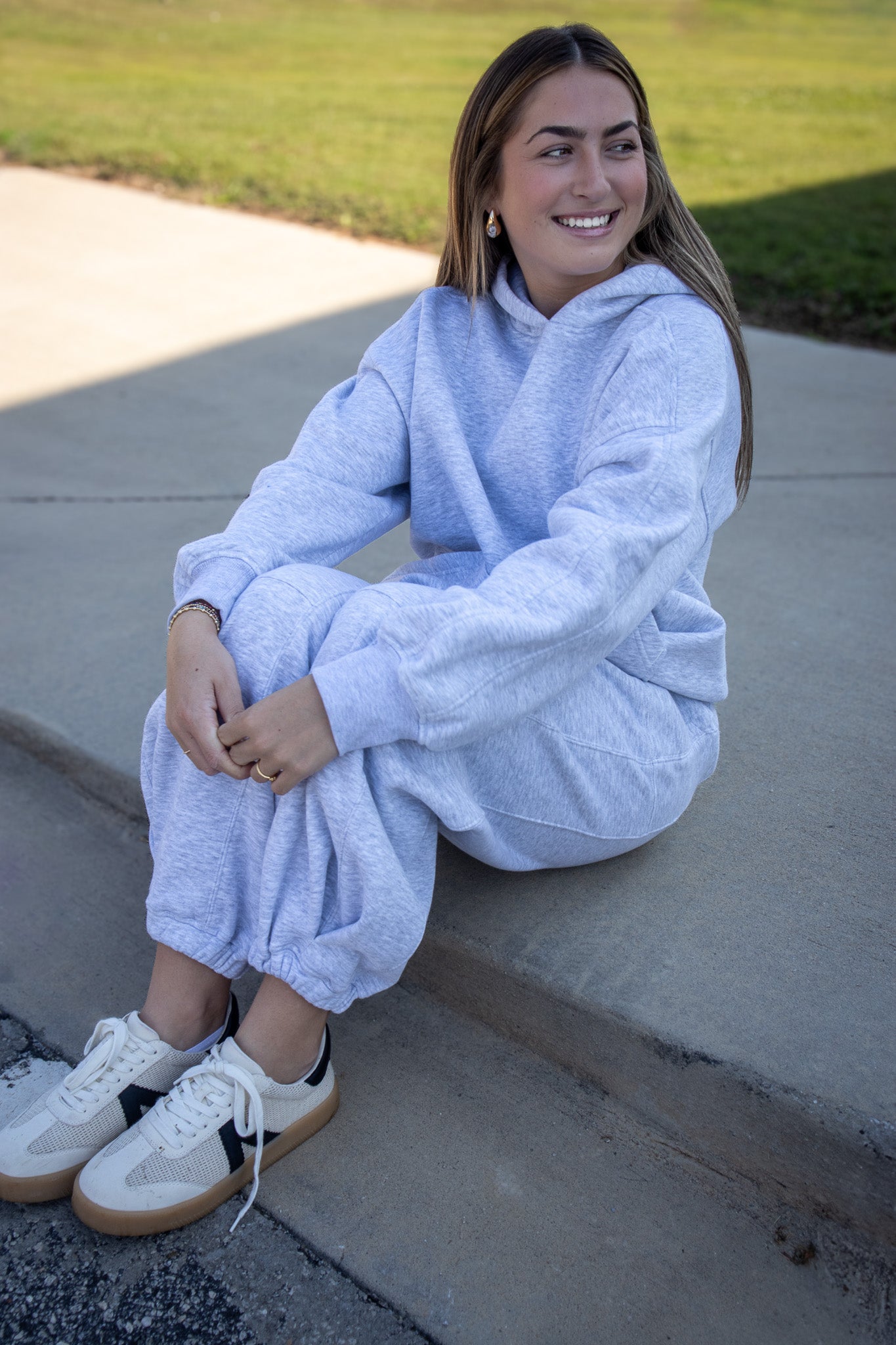 Experience ultimate comfort with the It Girl Oversized Fleece Hoodie in heather grey. Designed for a relaxed, oversized fit, it features soft fleece lining to keep you warm and cozy. The hoodie includes an elastic cuff and bottom for a snug feel without restricting movement. Stay hands-free and stylish with the spacious kangaroo pocket. Perfect for lounging or casual outings, this hoodie blends effortless style with practical comfort.