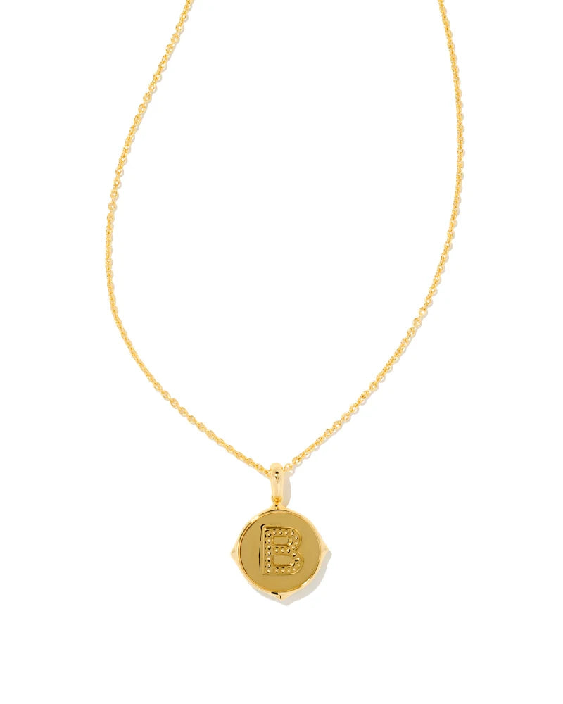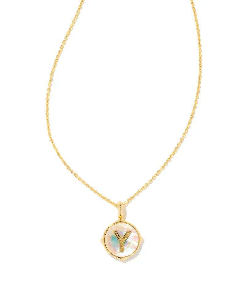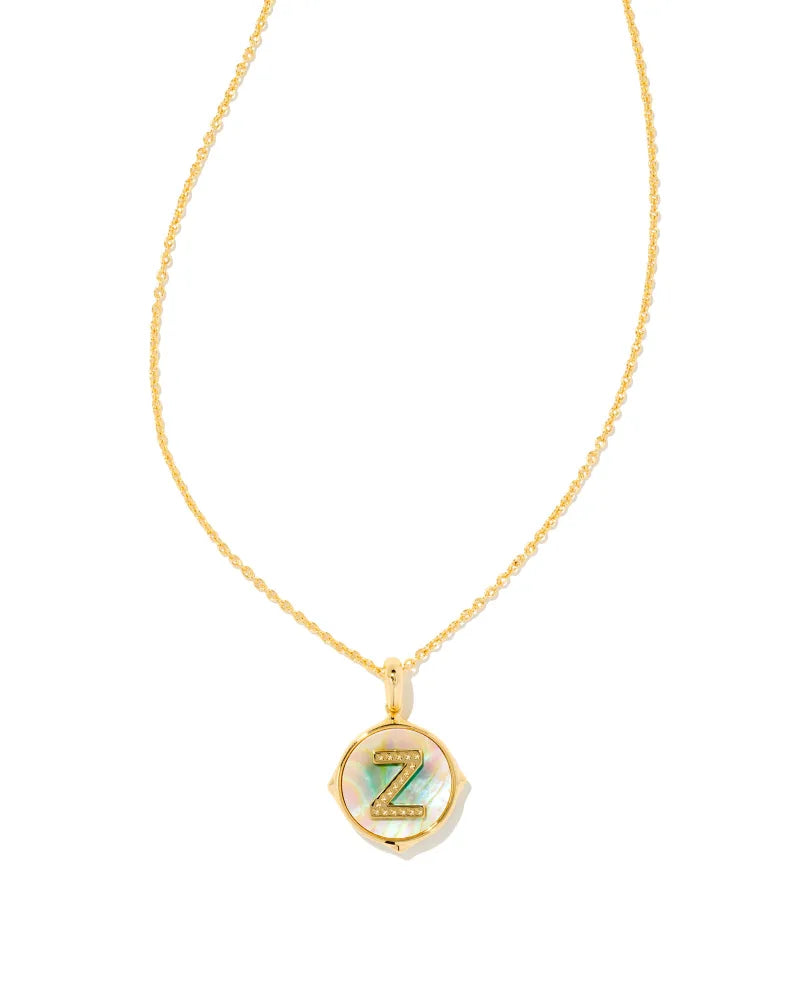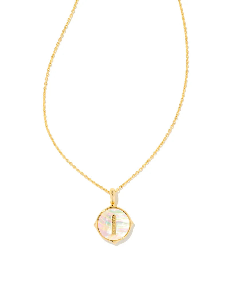 Kendra Scott- Letter Gold Disc Reversible Pendant Necklace in Iridescent Abalone
