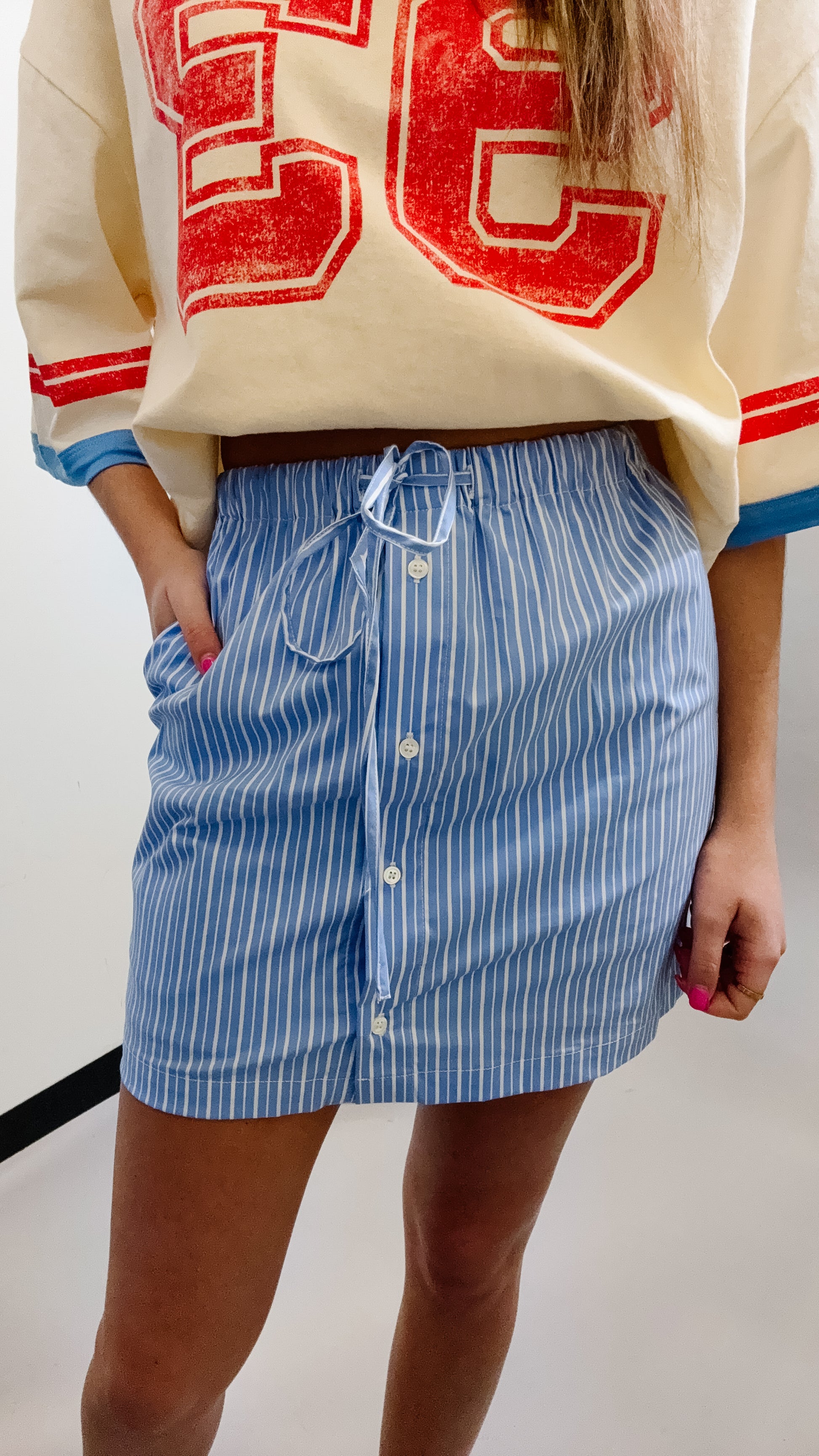 Pinstriped Poplin Drawstring Skort