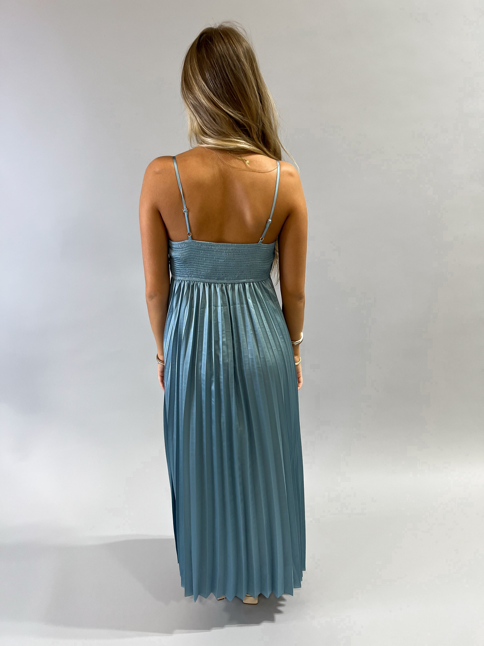 Simple Stunner Pleated Satin Midi Dress