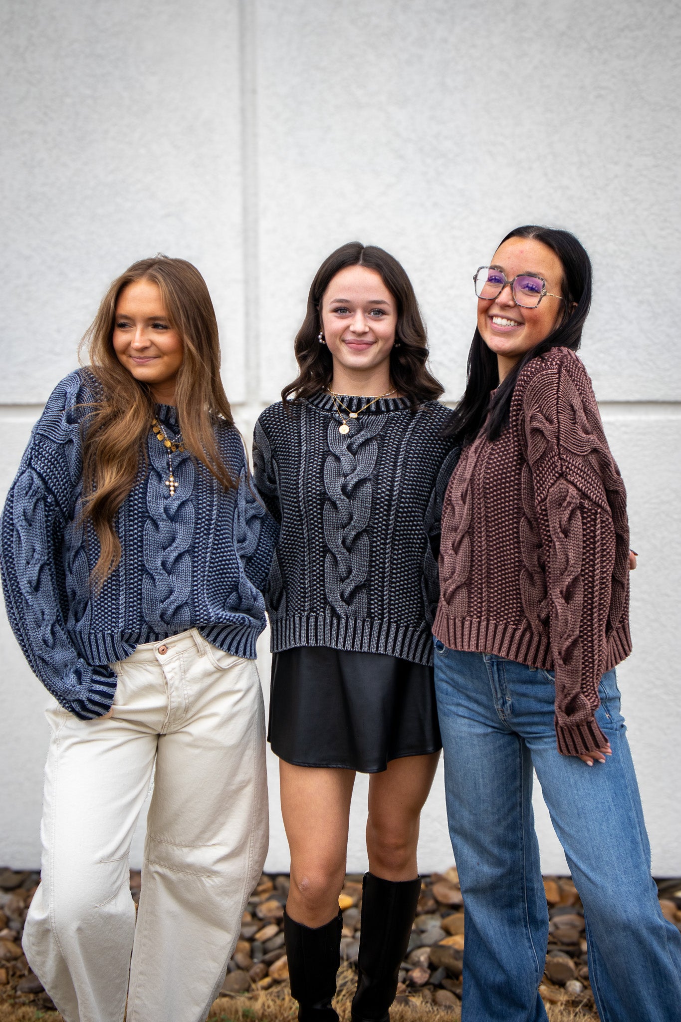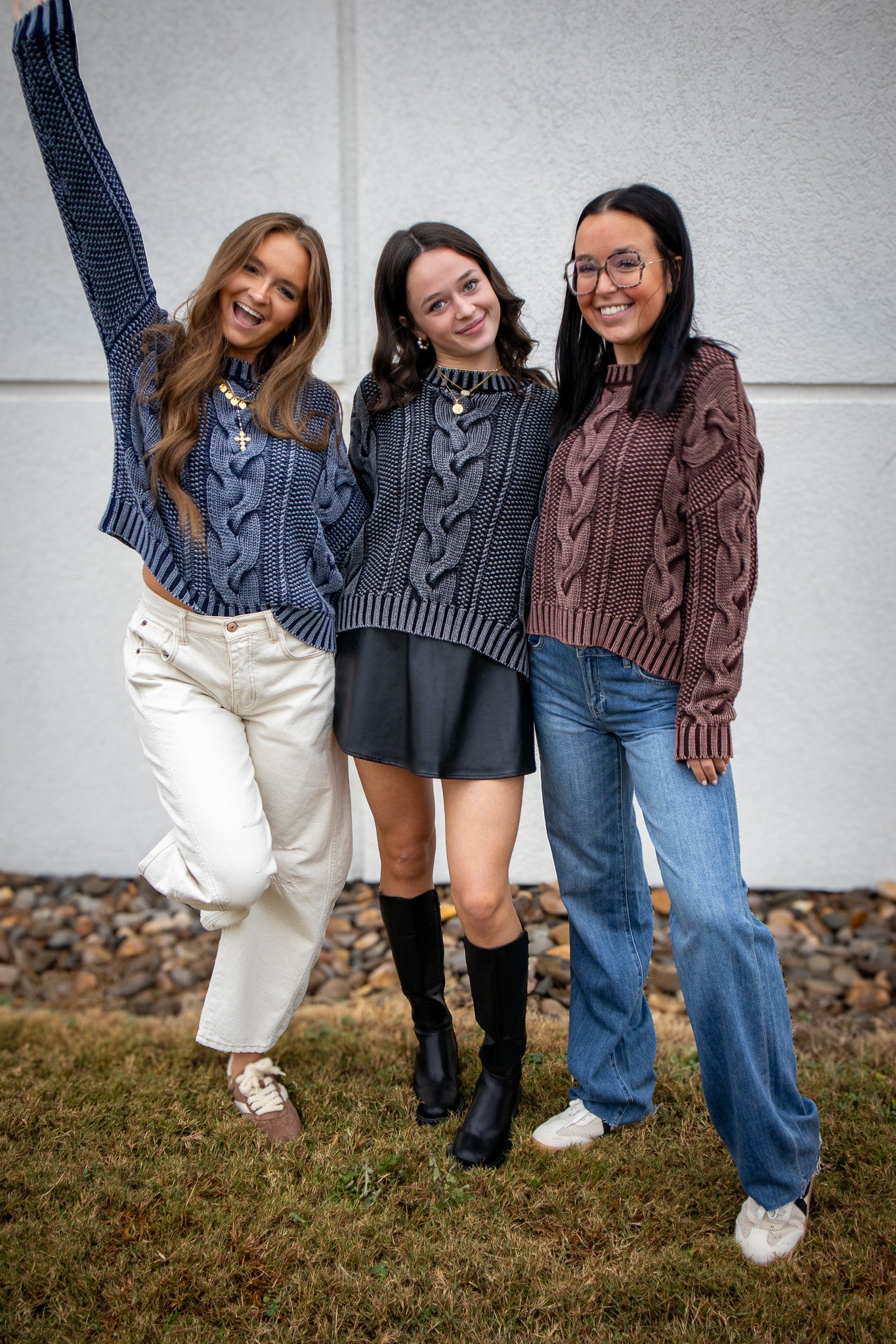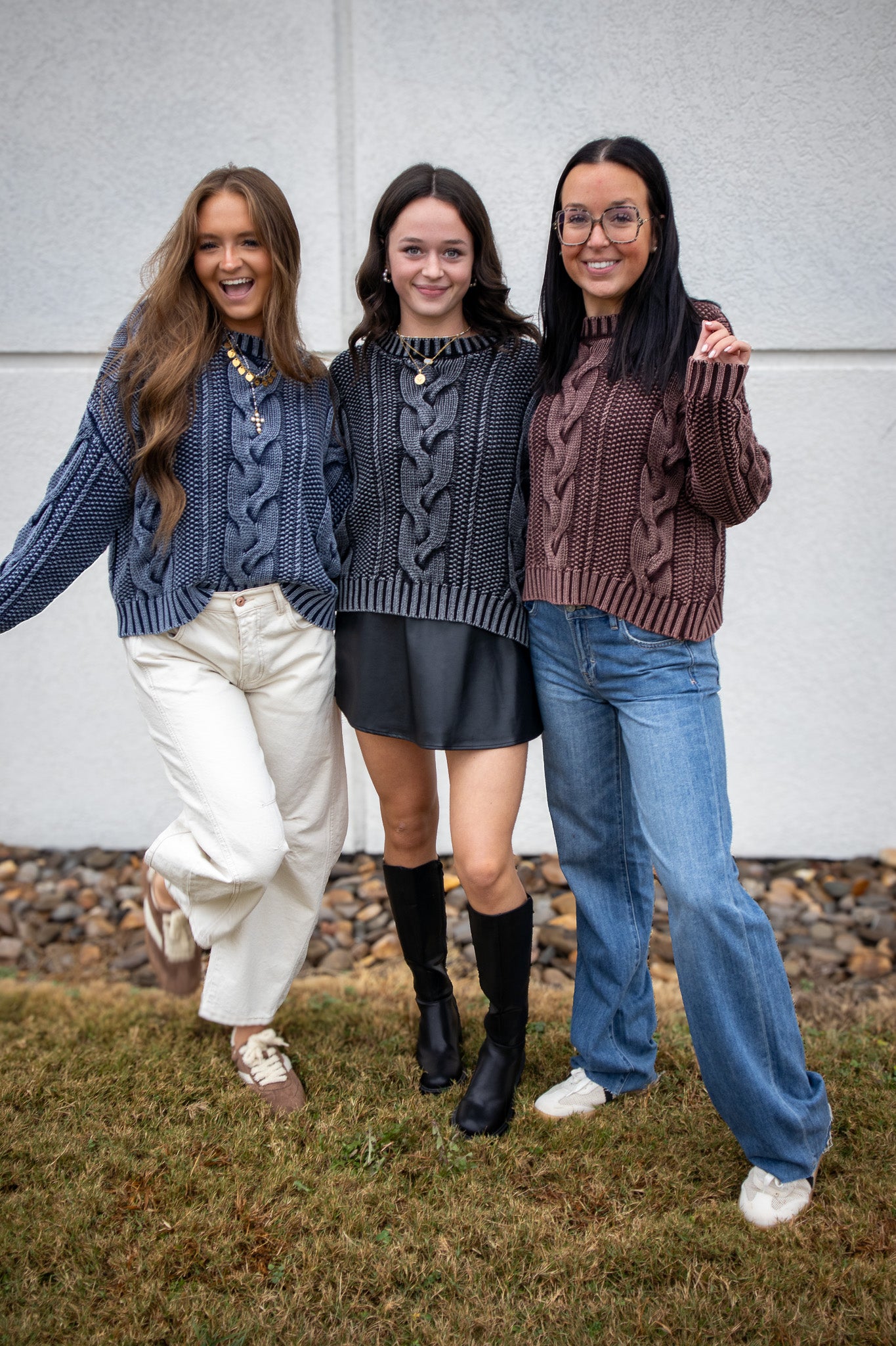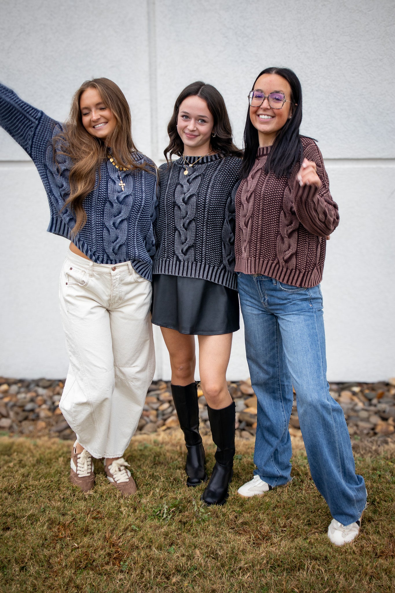 Stay warm and stylish in the Stay Cozy Cable Knit Sweater. Crafted with a super soft fabric, this chunky knit offers a comfortable, boxy fit that drapes effortlessly. Perfect for layering or wearing on its own, it combines cozy warmth with a modern silhouette to keep you cozy and chic all season long.