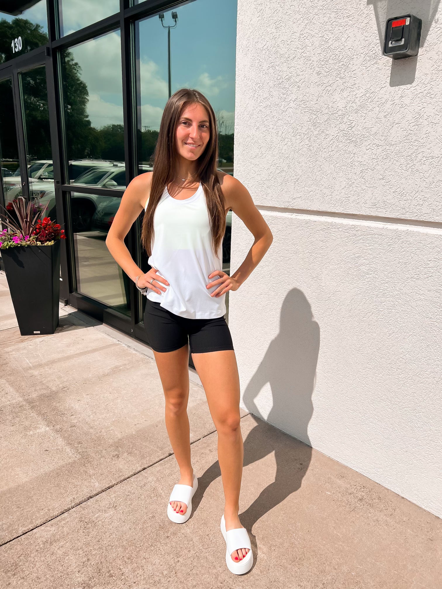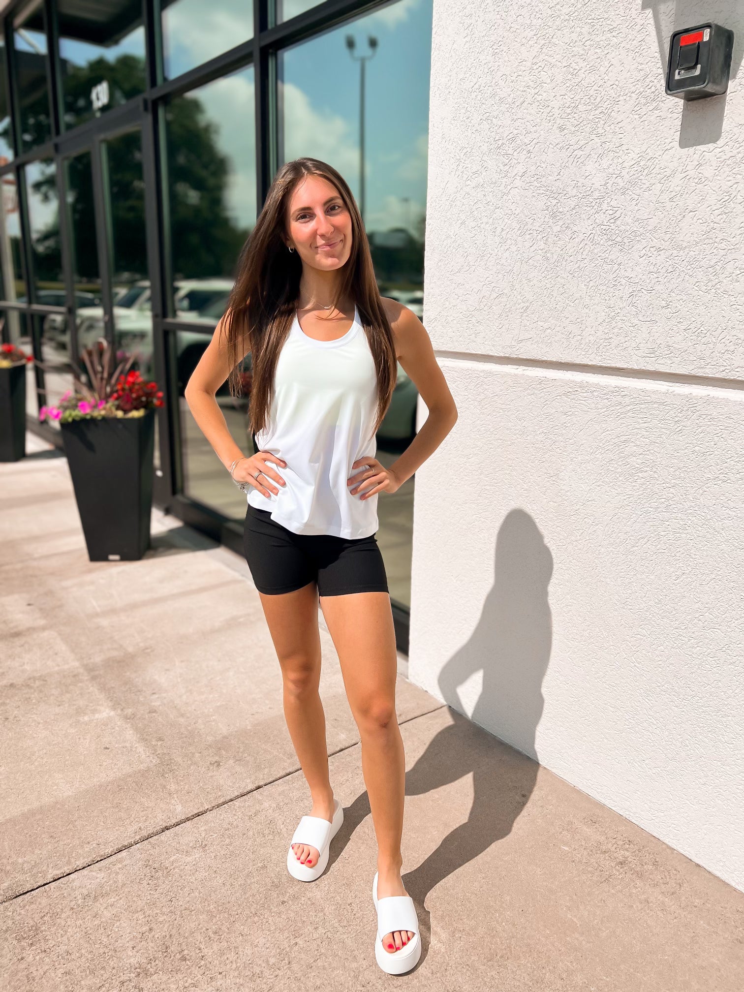 A designer looking tank that will not break the bank. Our Swifty Racerback tank is perfect for all of your workout needs. It is also a great layering piece. The soft material will make you never want to take it off.