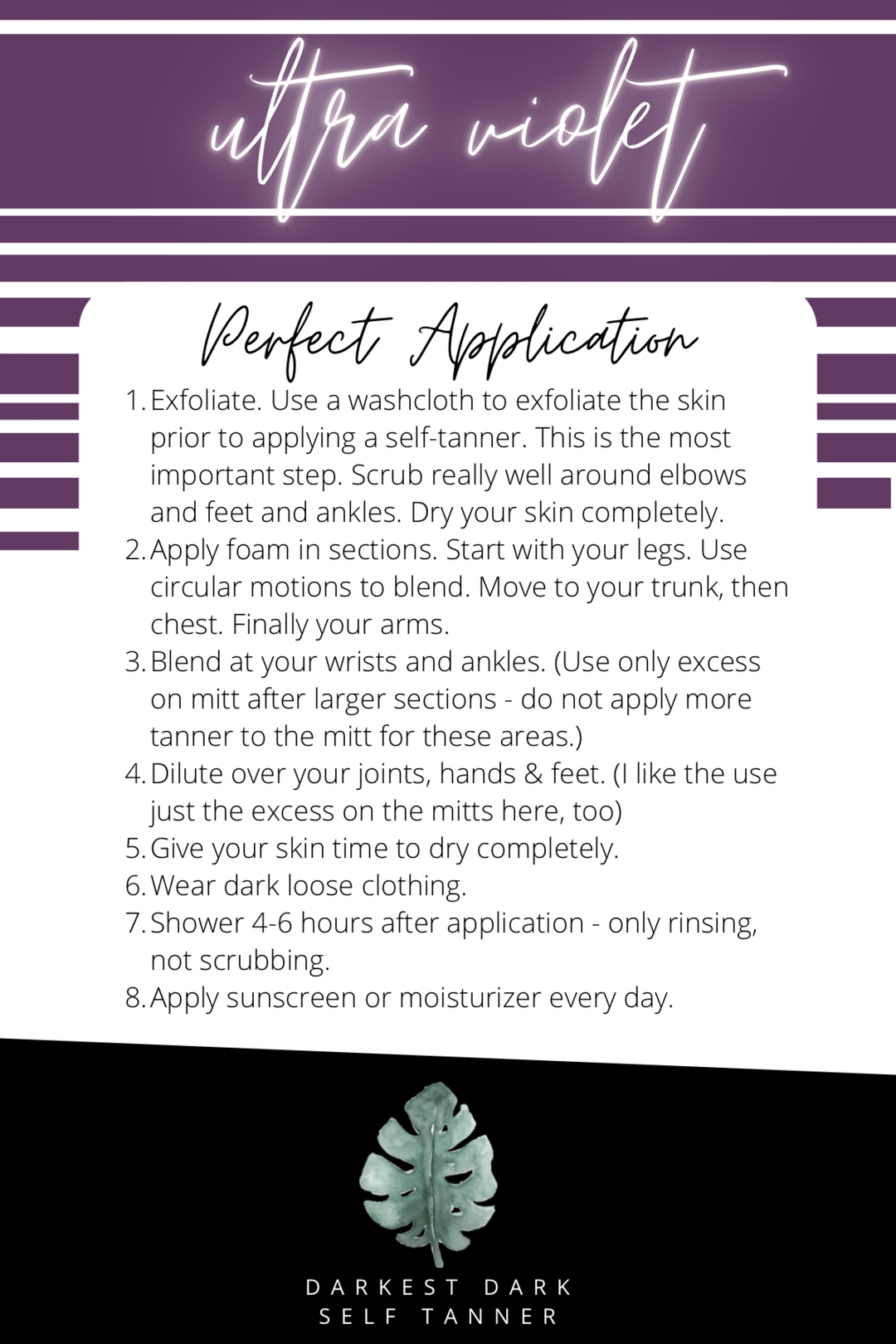 💜 Comes with a mitt for application and detailed instructions for the perfect glow.