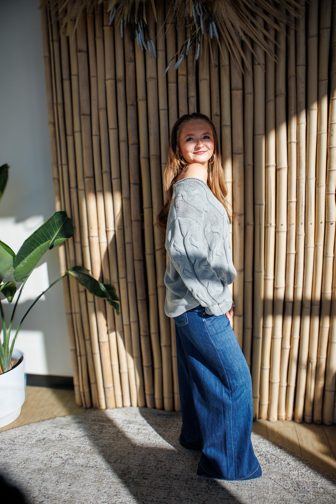 Tilly Oversized V Neck Cable Sweater - GRAY Crafted from a substantial cable knit, this oversized sweater delivers textural depth and enduring appeal. The relaxed V neckline elongates the silhouette while the slouchy fit provides effortless layering versatility. Finished with a rolled hem for a refined, intentional edge, this piece transitions seamlessly from casual weekends to elevated basics.