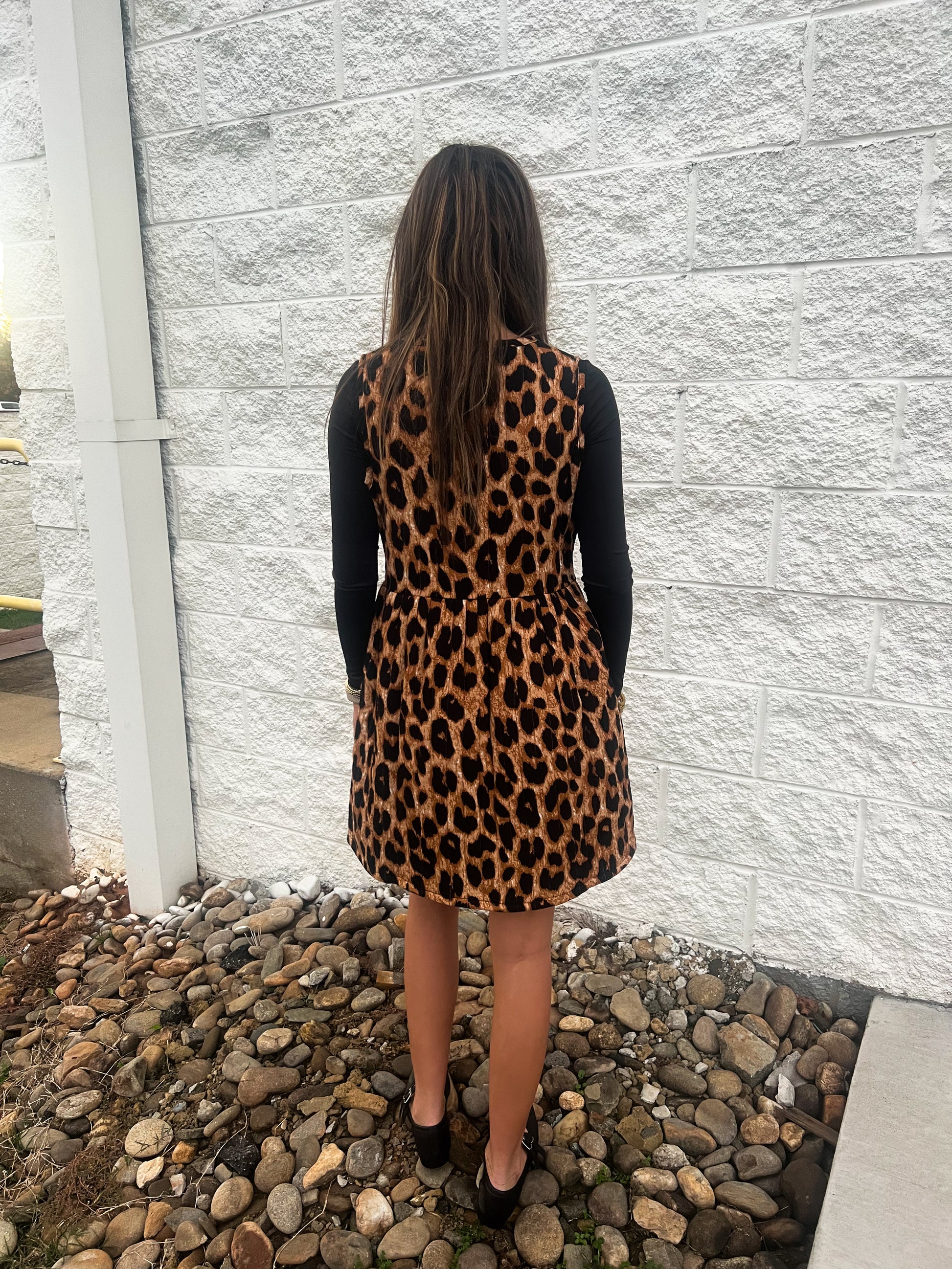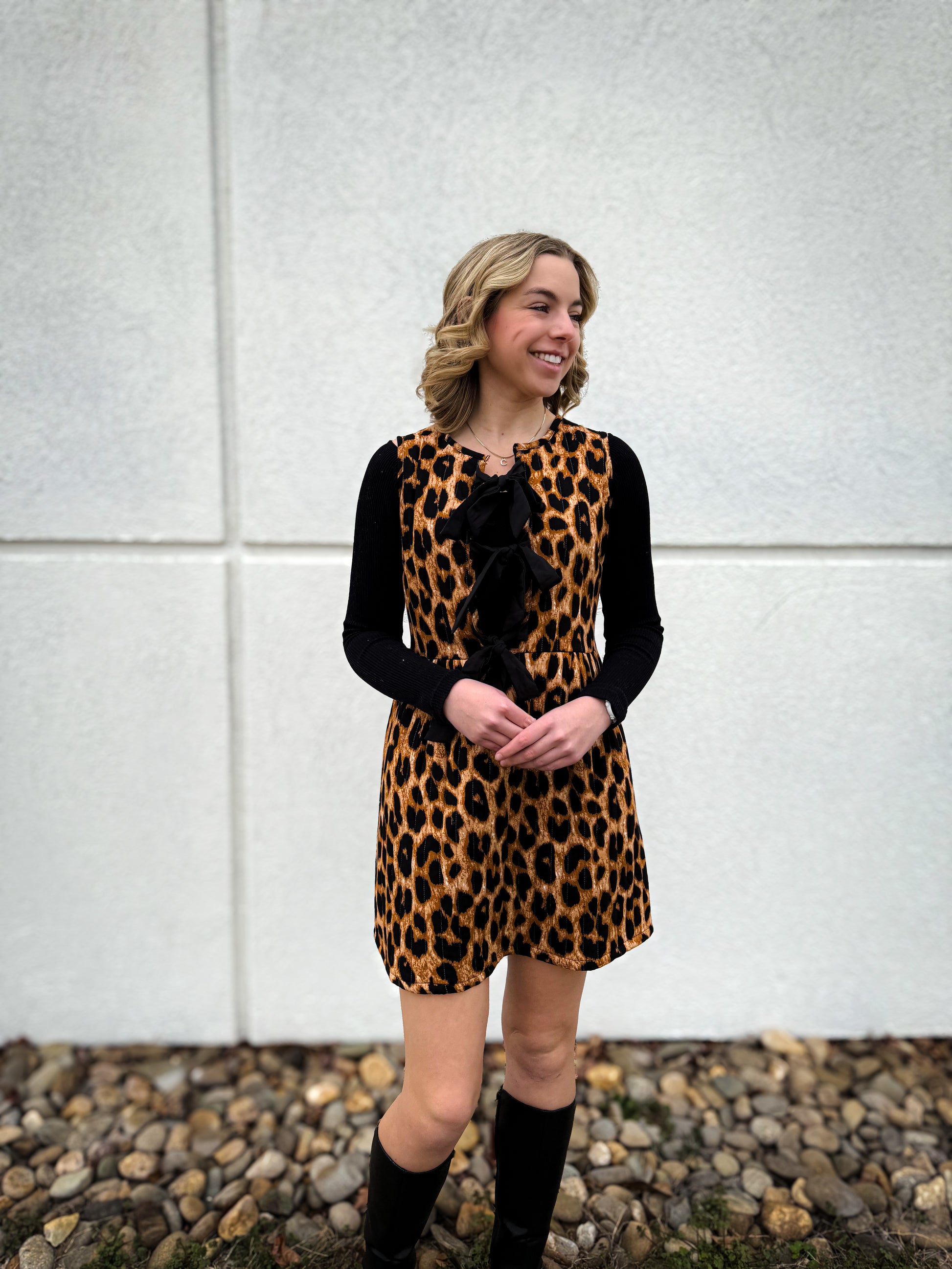 Roar with style in our Wild at Heart Leopard Mini Dress. This sleeveless dress features a bold leopard print with a contrasting ribbon tie detail at the bust for a playful touch. Plus, with pockets and a fully lined interior, it's both fashionable and functional. Go wild with your fashion choices!